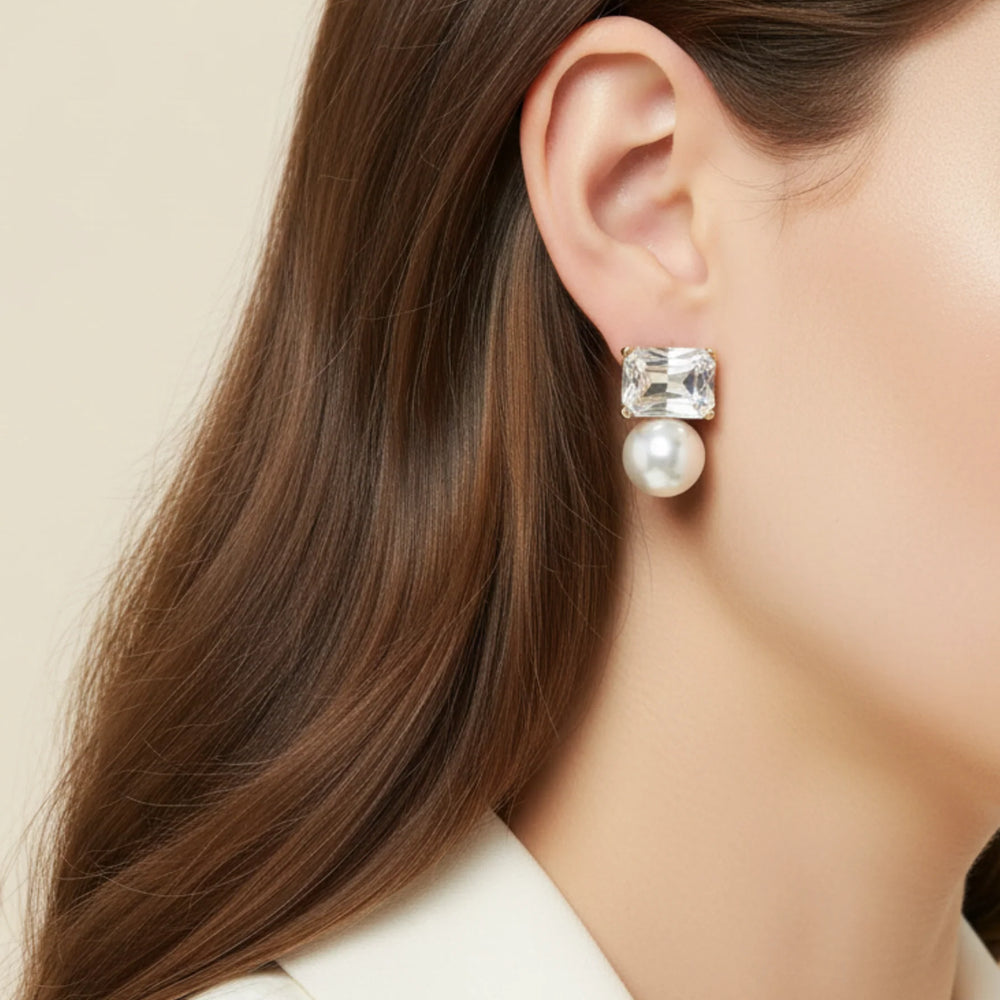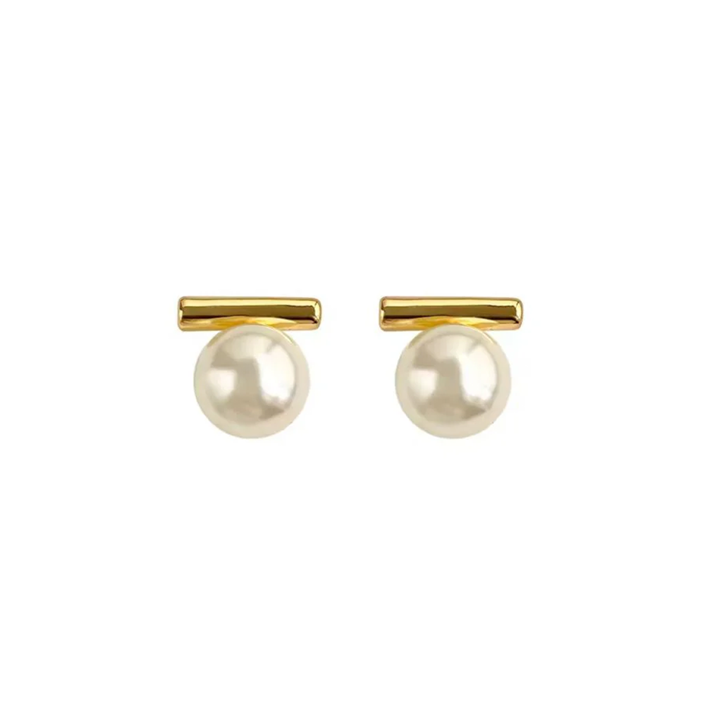 Add Set The Bar Pearl Studs - Gold to the cart