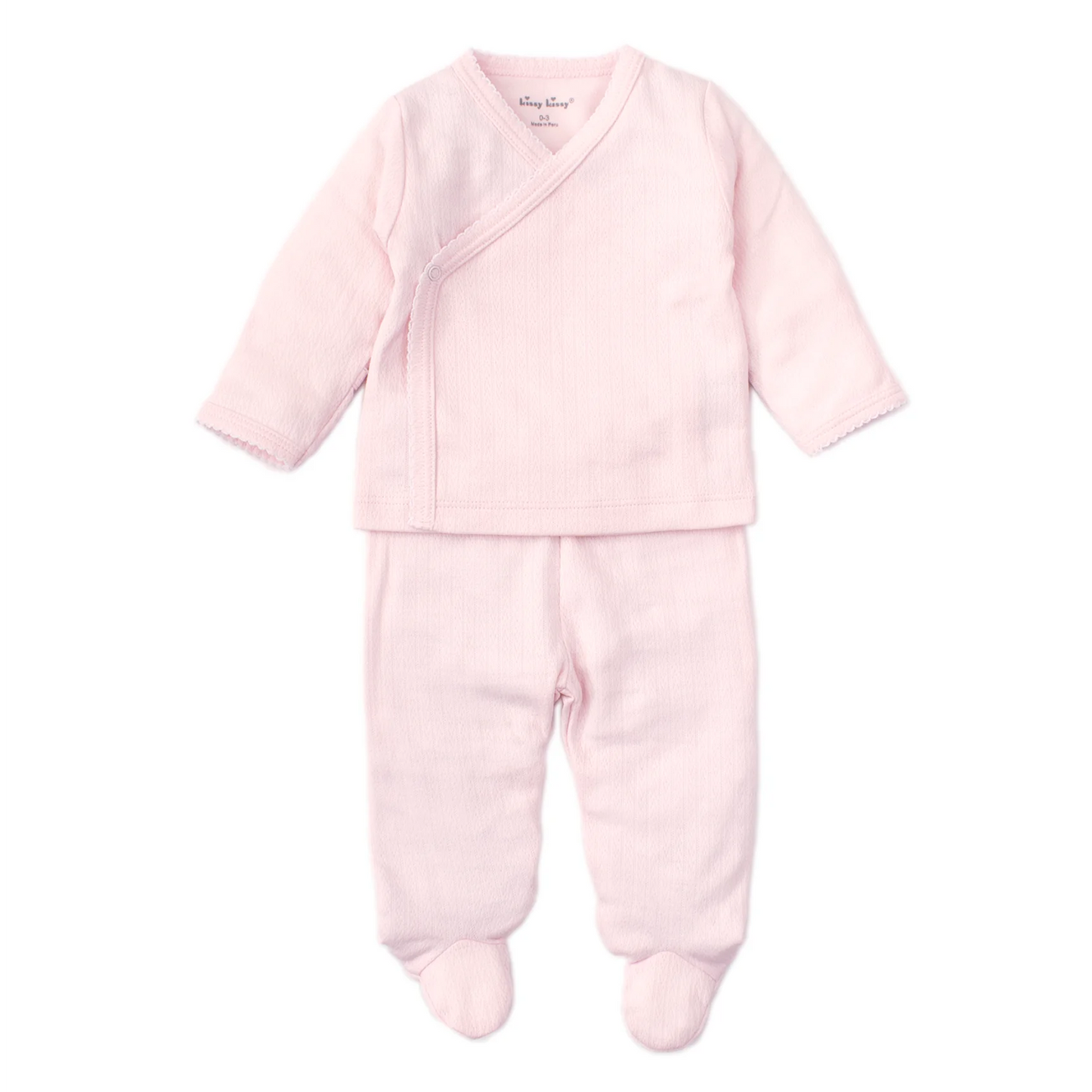 Outfit your baby boy or girl in our blue or pink pointelle two piece set, crafted from the finest Pima cotton. Our luxurious fabric will feel cool and comfortable against delicate skin. Set includes pullover tee and coordinating pant.