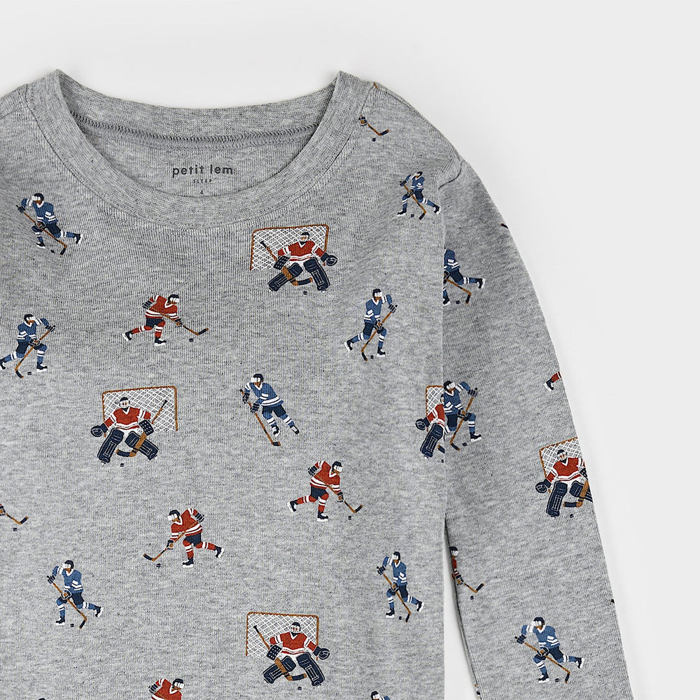 The cozy top and pants are made from organically grown cotton rib and feature ribbed cuffs and ankles for a snug fit. With a simple rounded neckline and an elasticated waistband, the PJs encourage independent dressing to make game mornings quicker and easier.