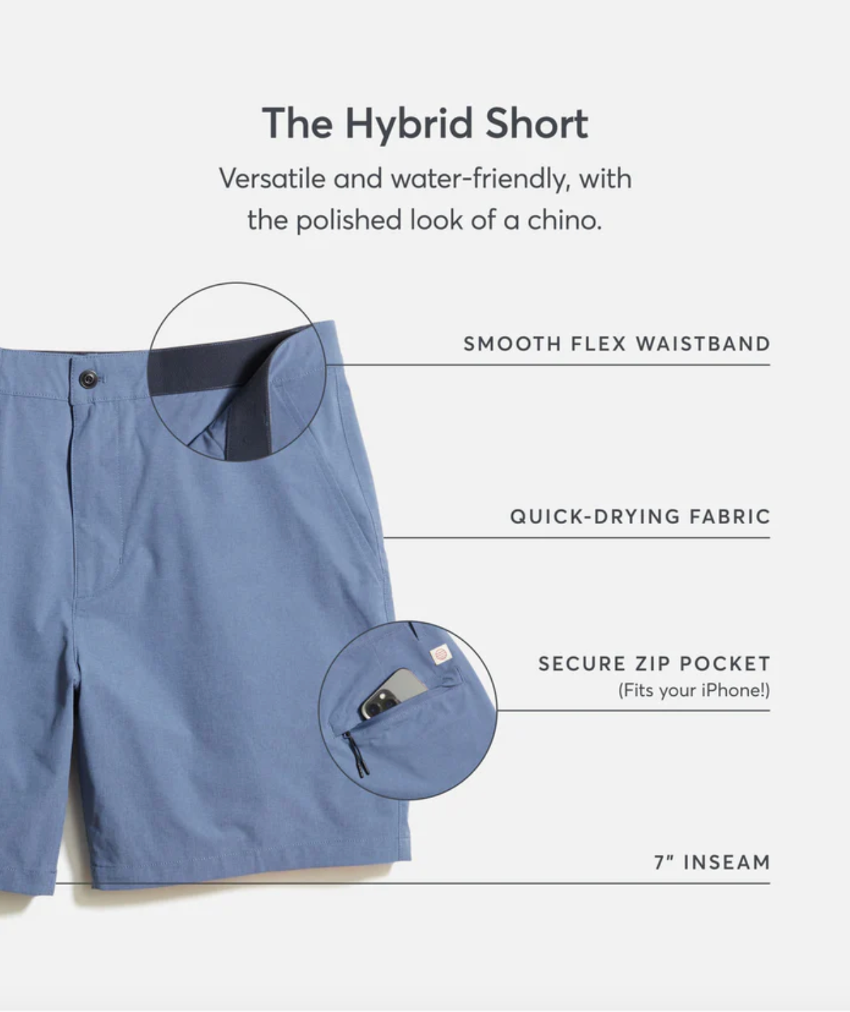 Meet the short that does everything—and we mean everything. Weekday happy hours? Yes. Weekend hikes? Also yes. Slip n’ slides? Sure, if you want. The exceptional stretch and zipper phone pocket keep you ready for action at a moment’s notice, while belt loops give you the option to tuck in and dress up. Now somebody find us a slip n’ slide.