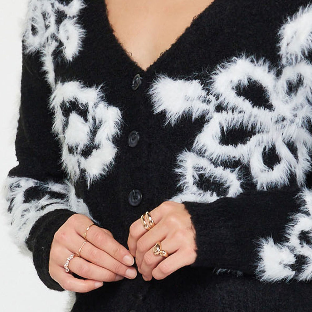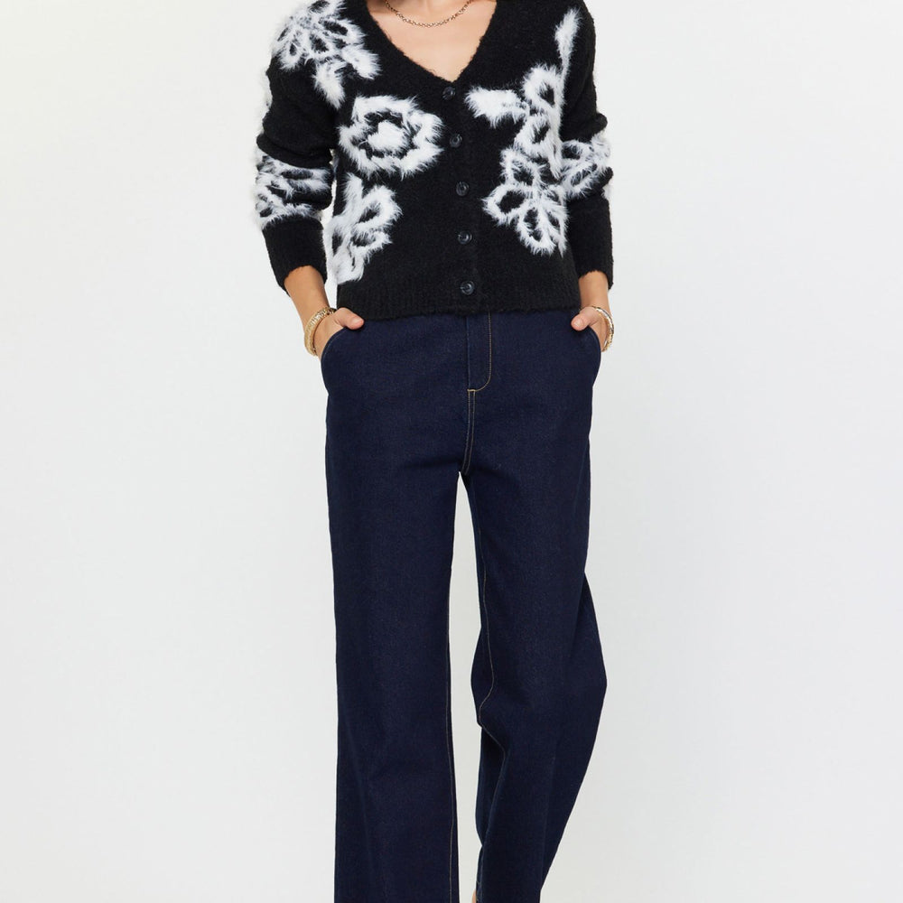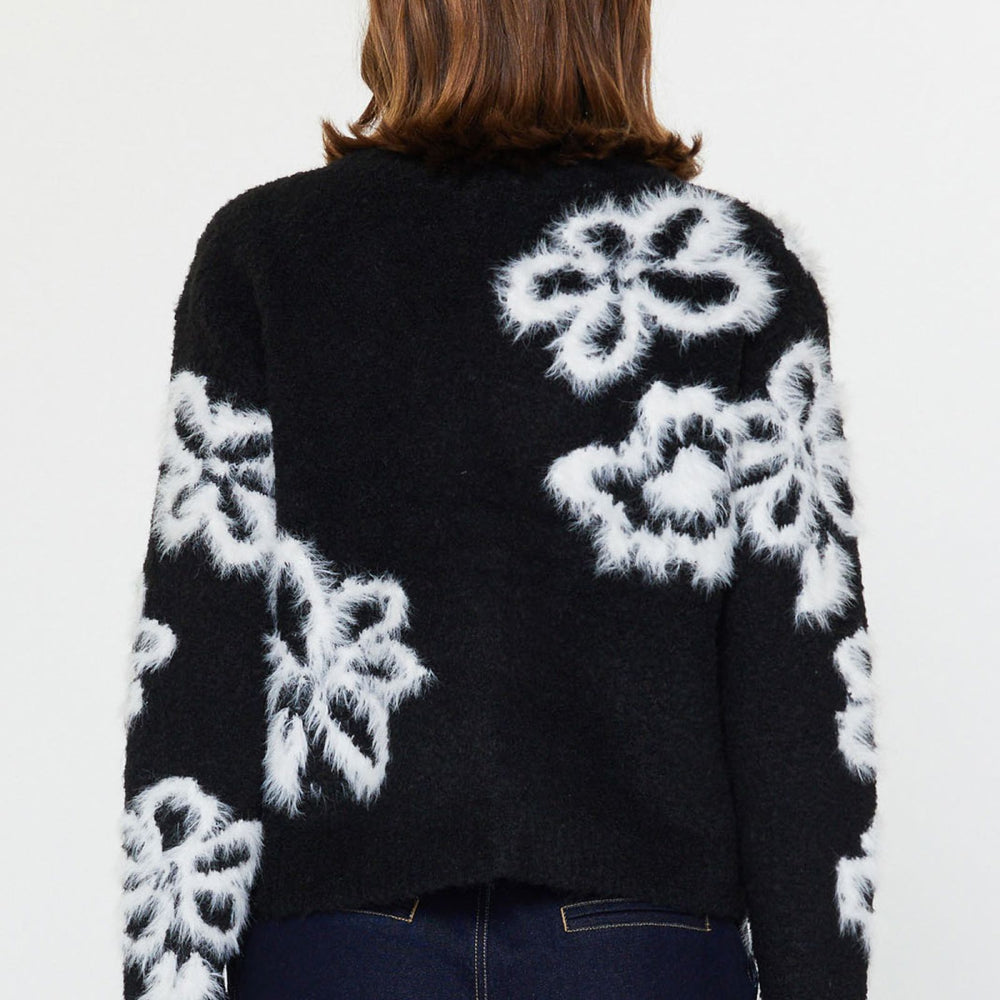 V-Neck Button Up L/S Floral Sweater