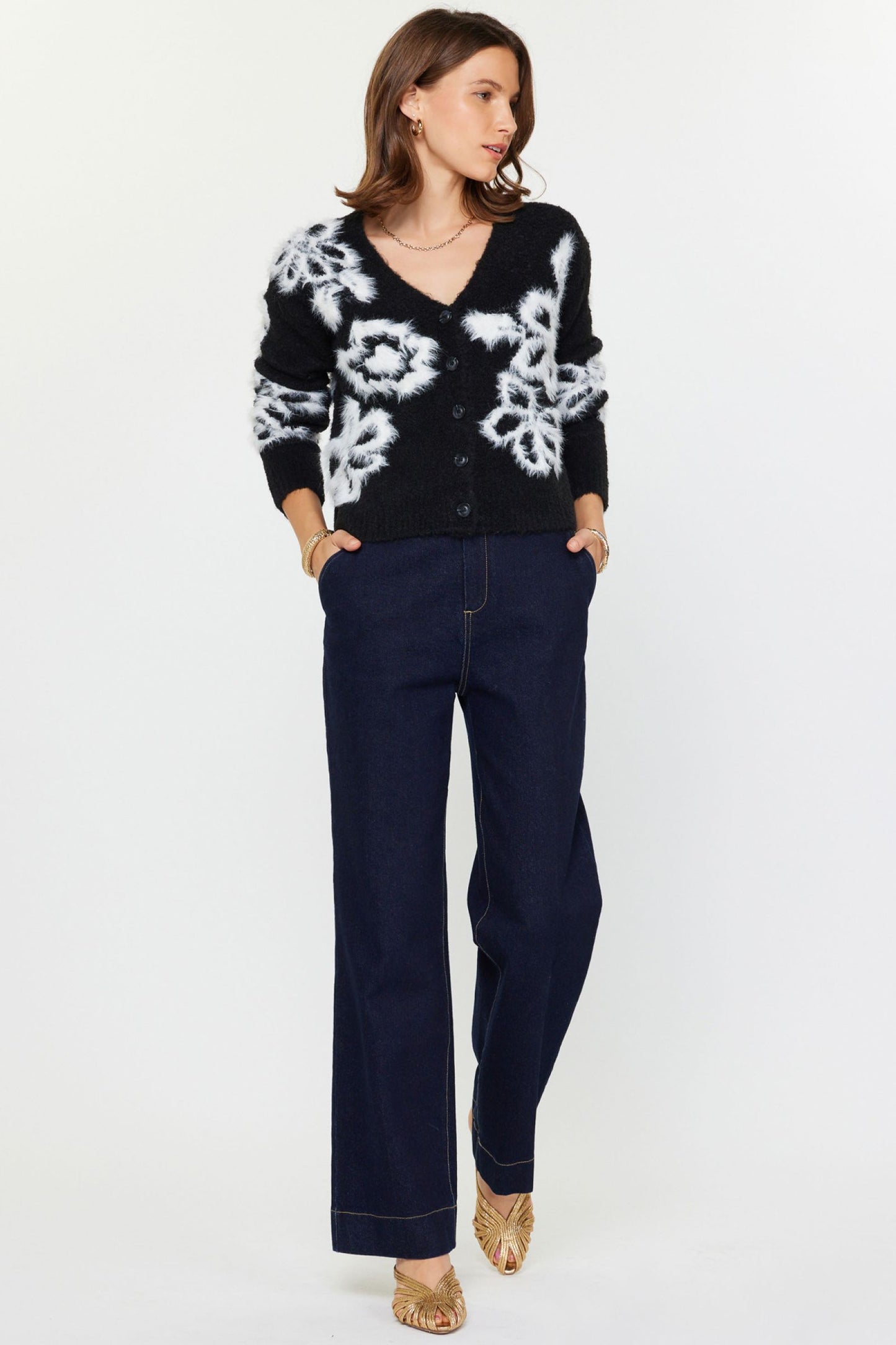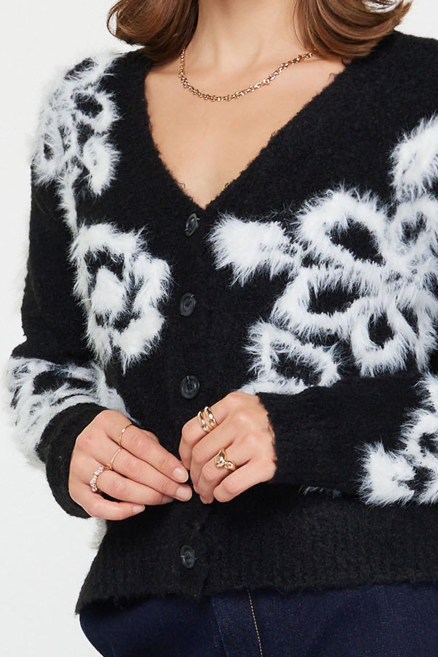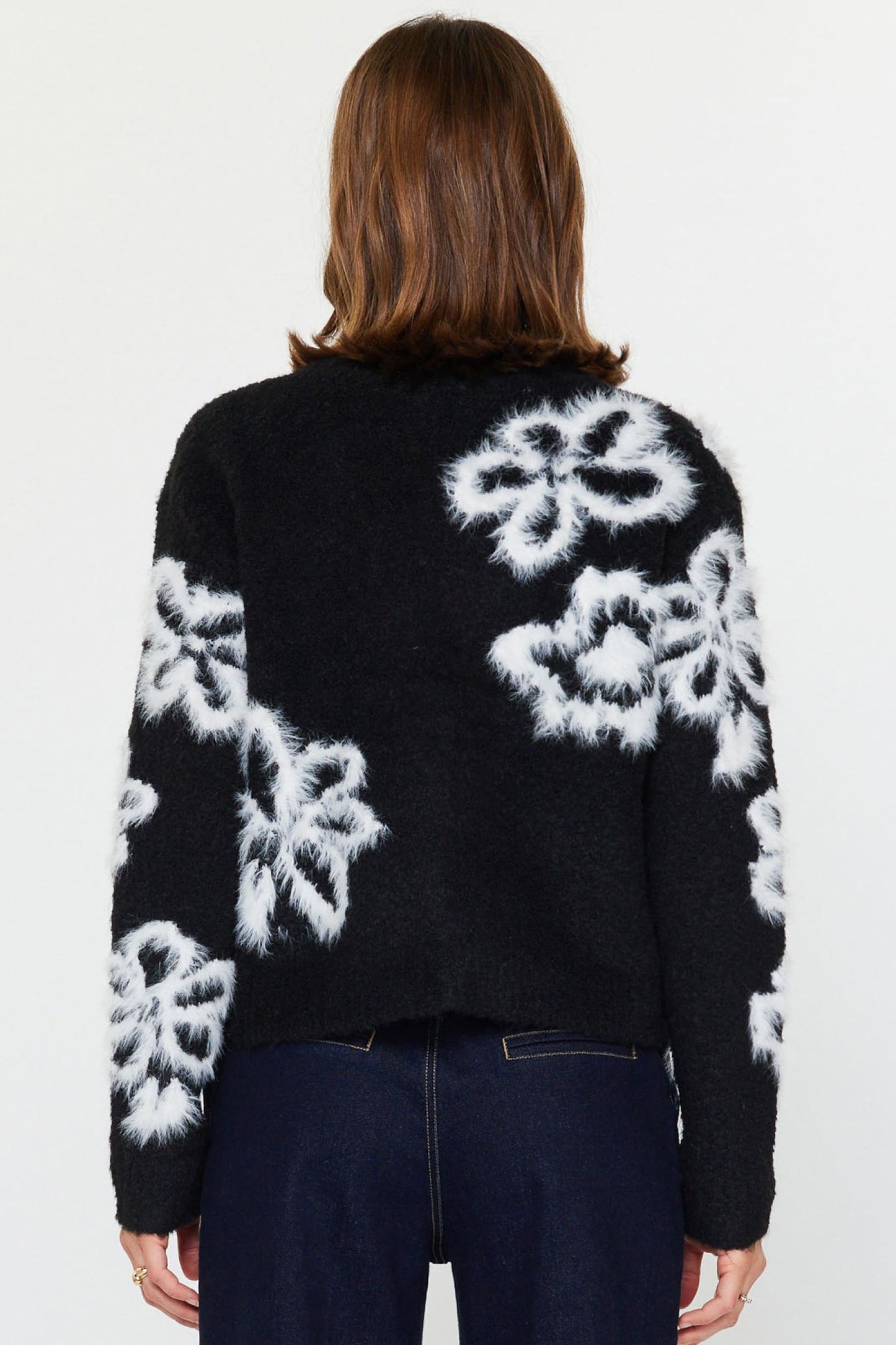 V-Neck Button Up L/S Floral Sweater