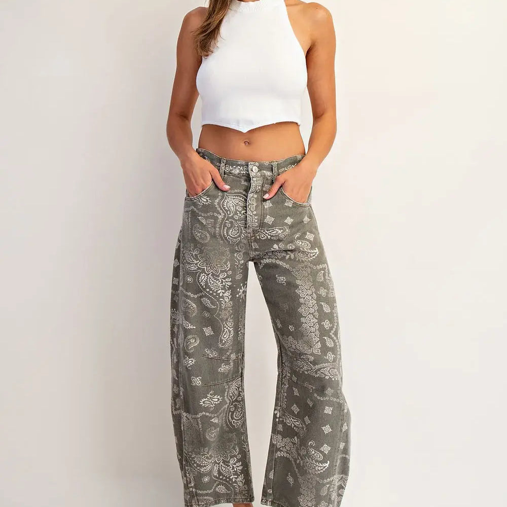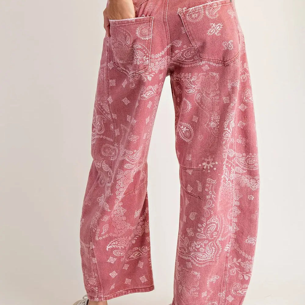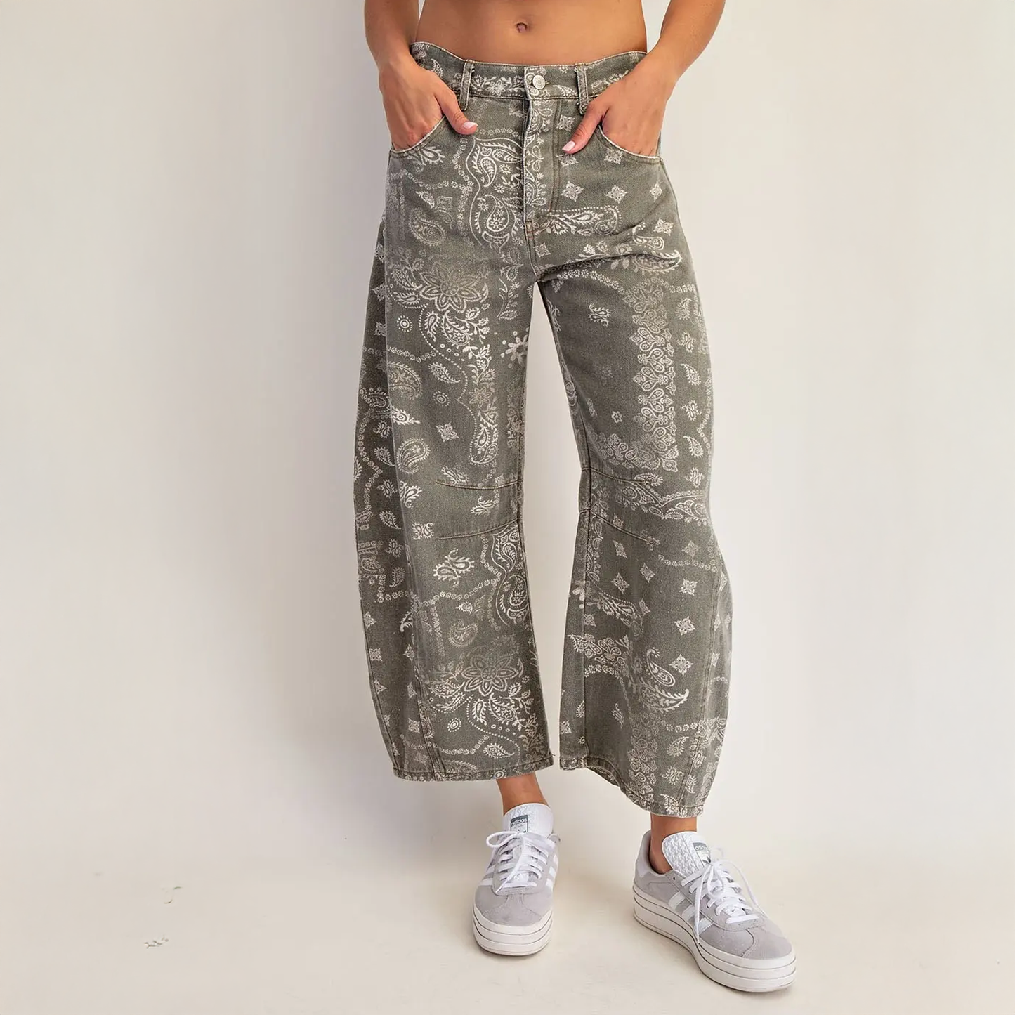 Mineral Washed Paisley Printed Barrel Jeans ✨