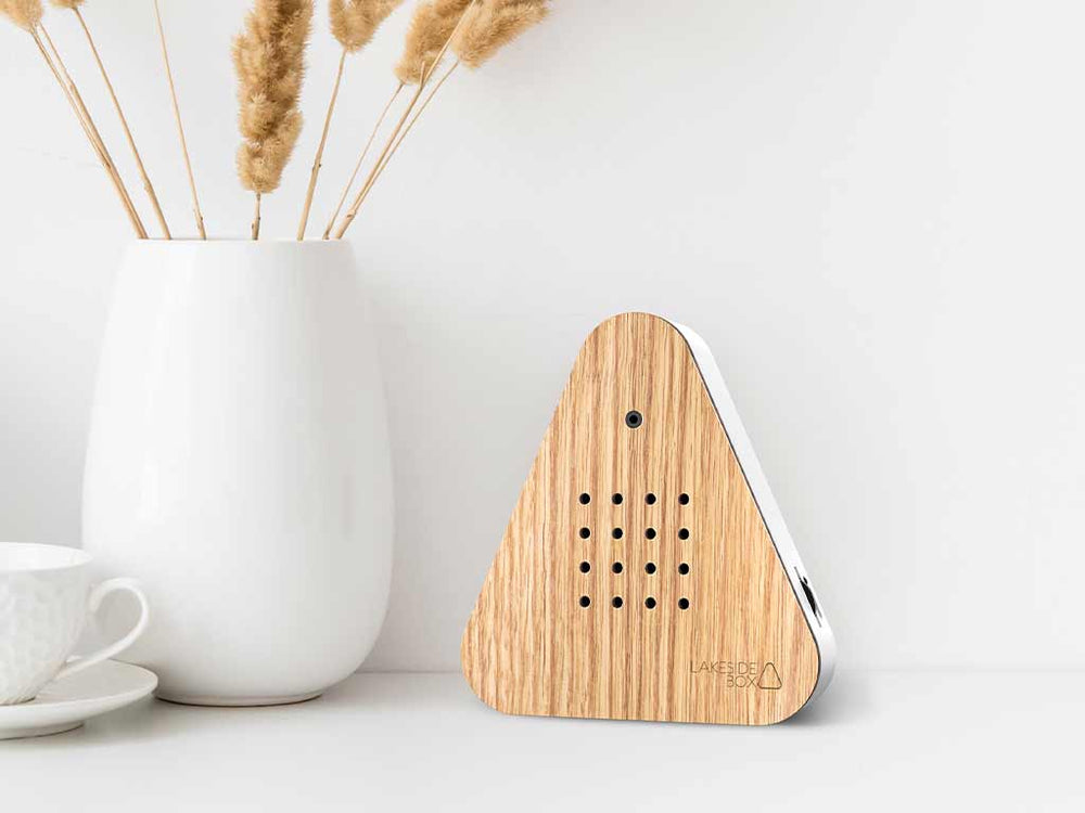 You activate the nature sounds as you pass by; if no new impulse follows, they gently fade out after two minutes. Whether at home or in the office, in the bathroom or hallway, you can place your Lakesidebox anywhere or simply hang it on the wall. Thanks to the rechargeable battery, it can be quickly and conveniently charged.