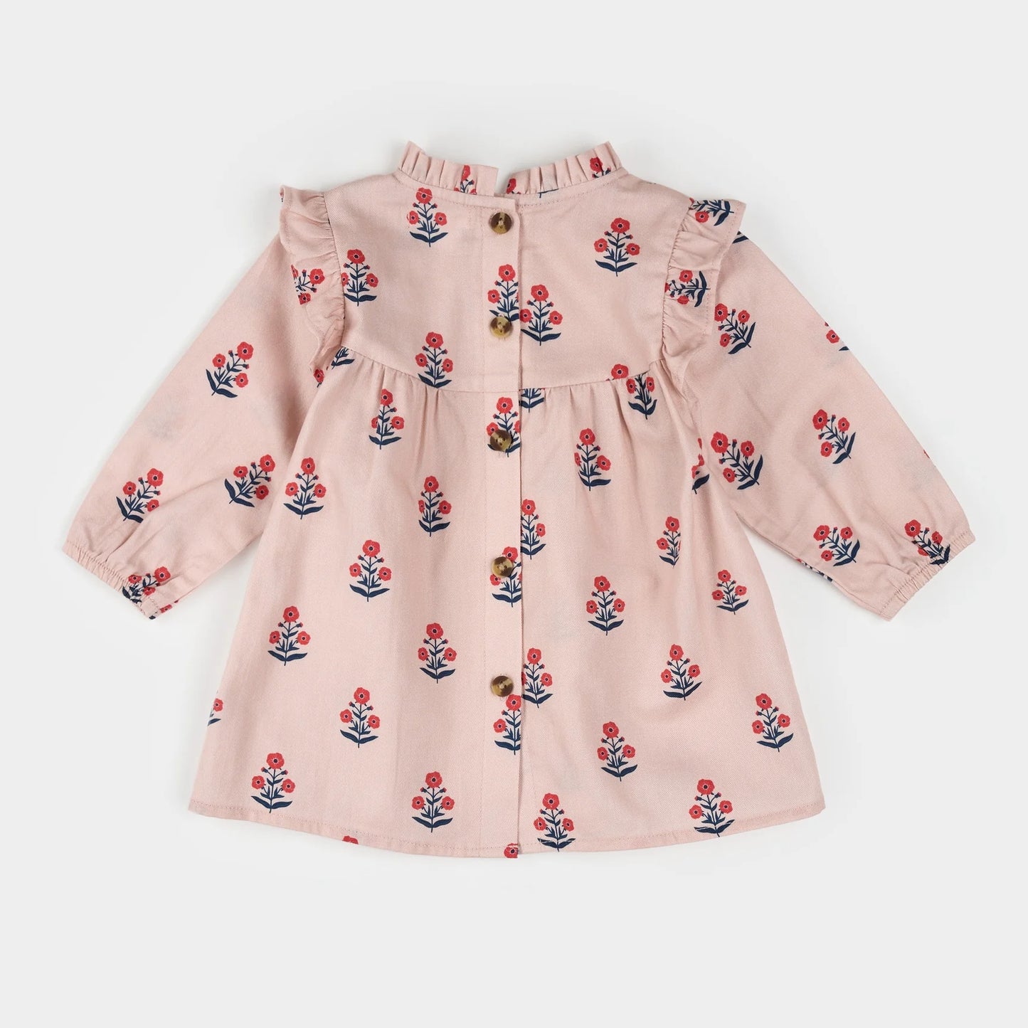 This sweet long-sleeved dress set includes a pretty-in-pink tea dress and coordinating white tights. Made from brushed cotton twill, it’s cozy yet light to keep her comfortable and on the move. The dress features sweet frilly detailing along the neck and shoulders and a button placket at the back for easy dressing. It’s the perfect outfit for tea parties with mom or running errands in town with the family.