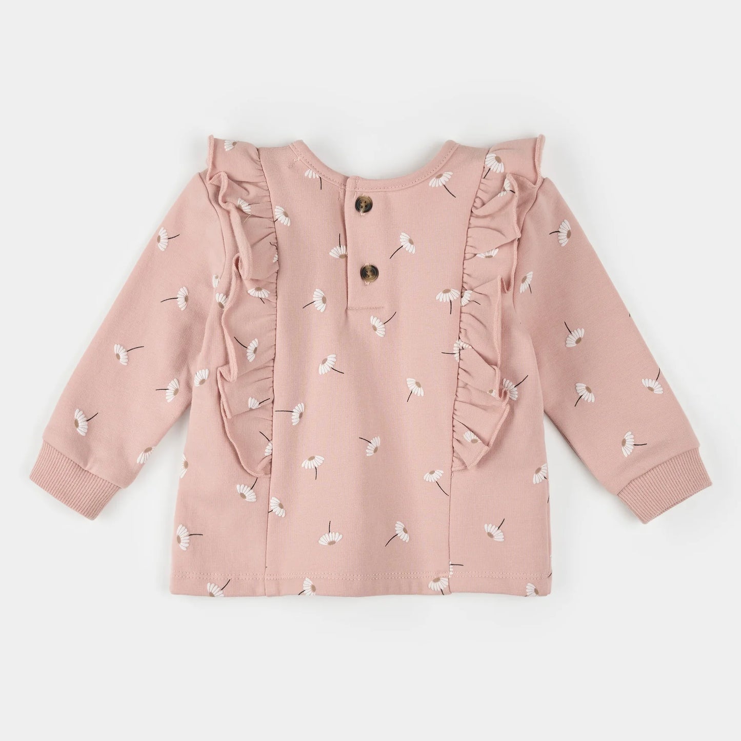 A cozy, girly set for full days out of the house. The 2 piece set includes a long-sleeved fleece top with a ruffle trim and matching joggers for top-to-toe comfort. With easy, fuss-free dressing in mind, the top is fitted with a button placket at the back while the joggers have an elasticated, drawstring waistband.