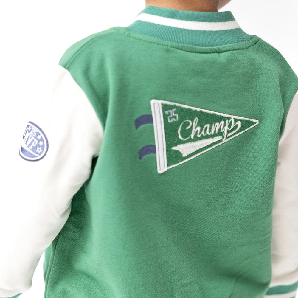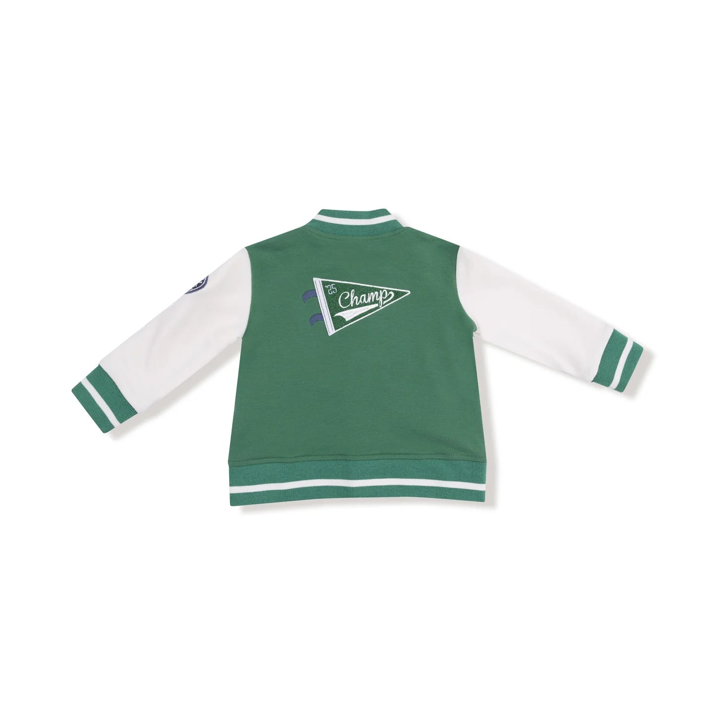 Bring sporty charm and cozy vibes together with our Letterman Jacket made from soft French Terry with a standout chenille pennant patch on the back. This lightweight yet warm jacket adds a classic, playful touch to your little one’s fall and winter outfits. Perfect for layering over tees or joggers, it’s built for all-day comfort and endless style.