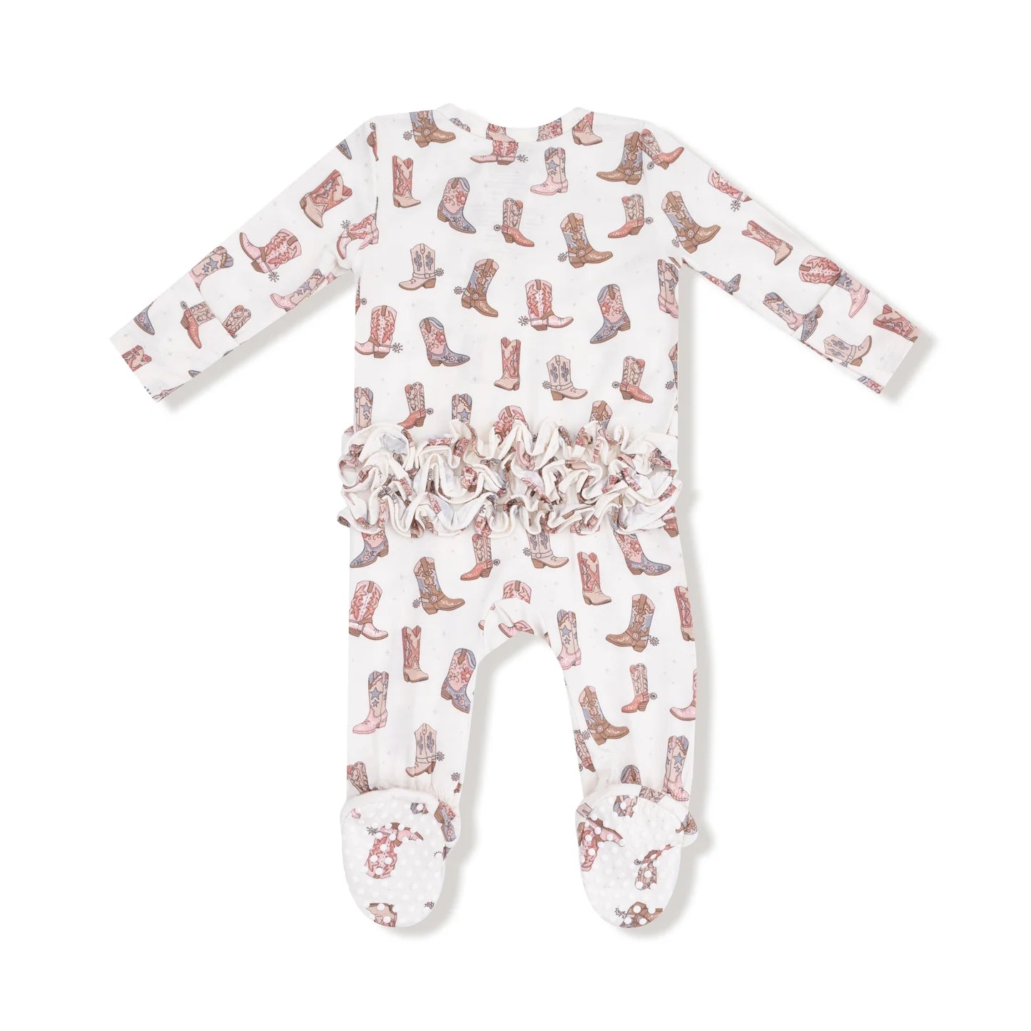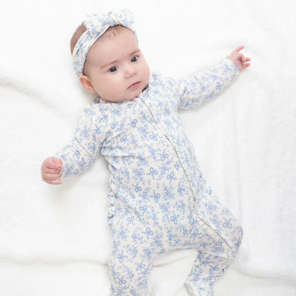 From dreamy naptimes to playful adventures, our Ruffle Back Footie wraps your little one in cozy comfort and delightful whimsy. Accessories sold separately.