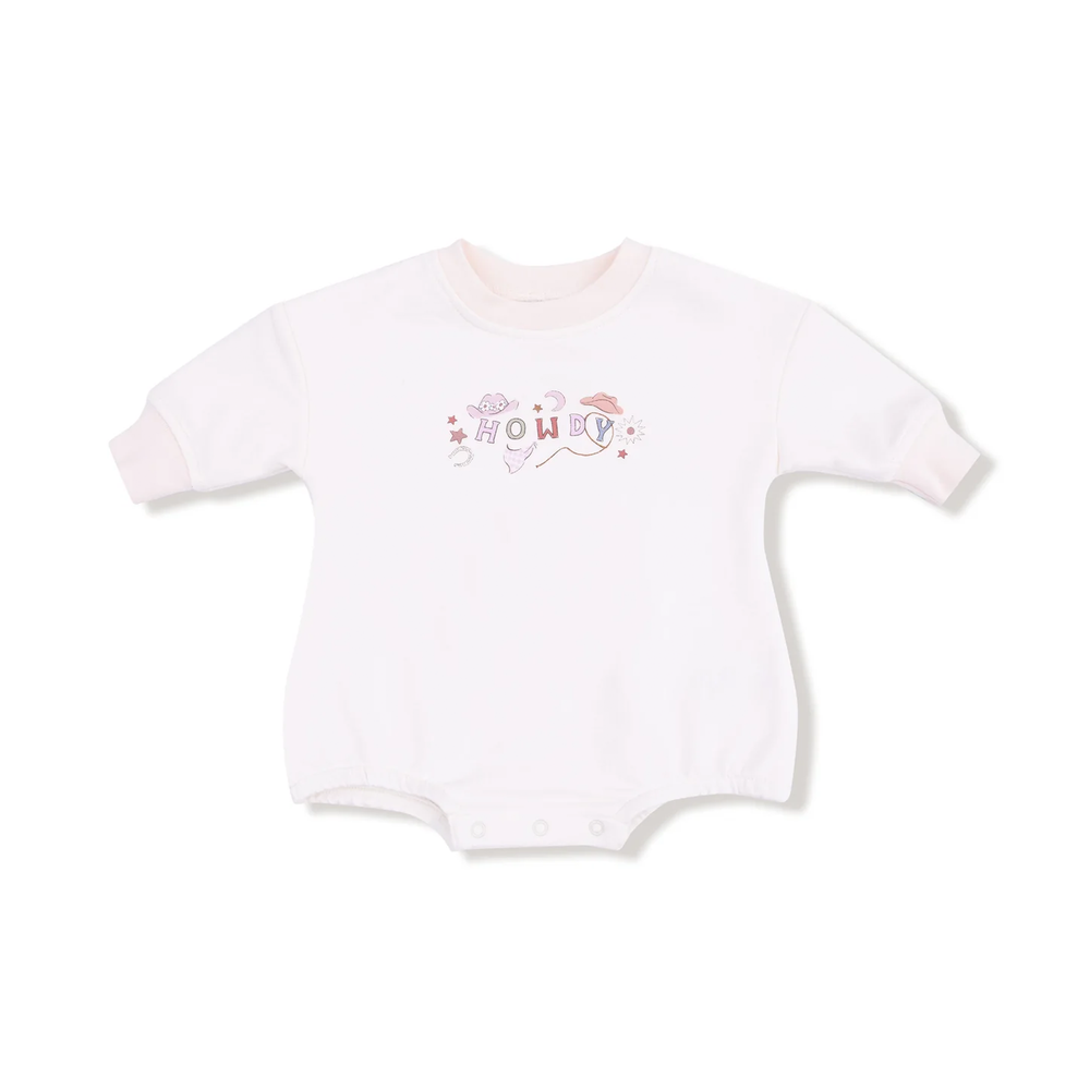 Say hello to comfort and charm! Our Sweatshirt Bubble, crafted from soft French terry, features a fun “Howdy” silk screen that adds a playful, friendly touch. With its roomy bubble silhouette and cozy fabric, this sweatshirt is perfect for layering and keeps your little one comfy during all their fall and winter adventures.