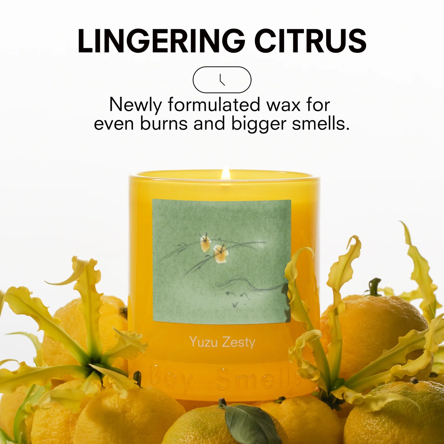 Yuzu Zest is a sparkly citrus burst for your senses—the ultimate revitalizer. We’ve paired it with tangy fruit and soft florals to keep things bright but balanced. Then it’s all soft landings as amber woods and musk wrap the room in a warm, effortless hush. Zing meets zen. Drama, dissolved.