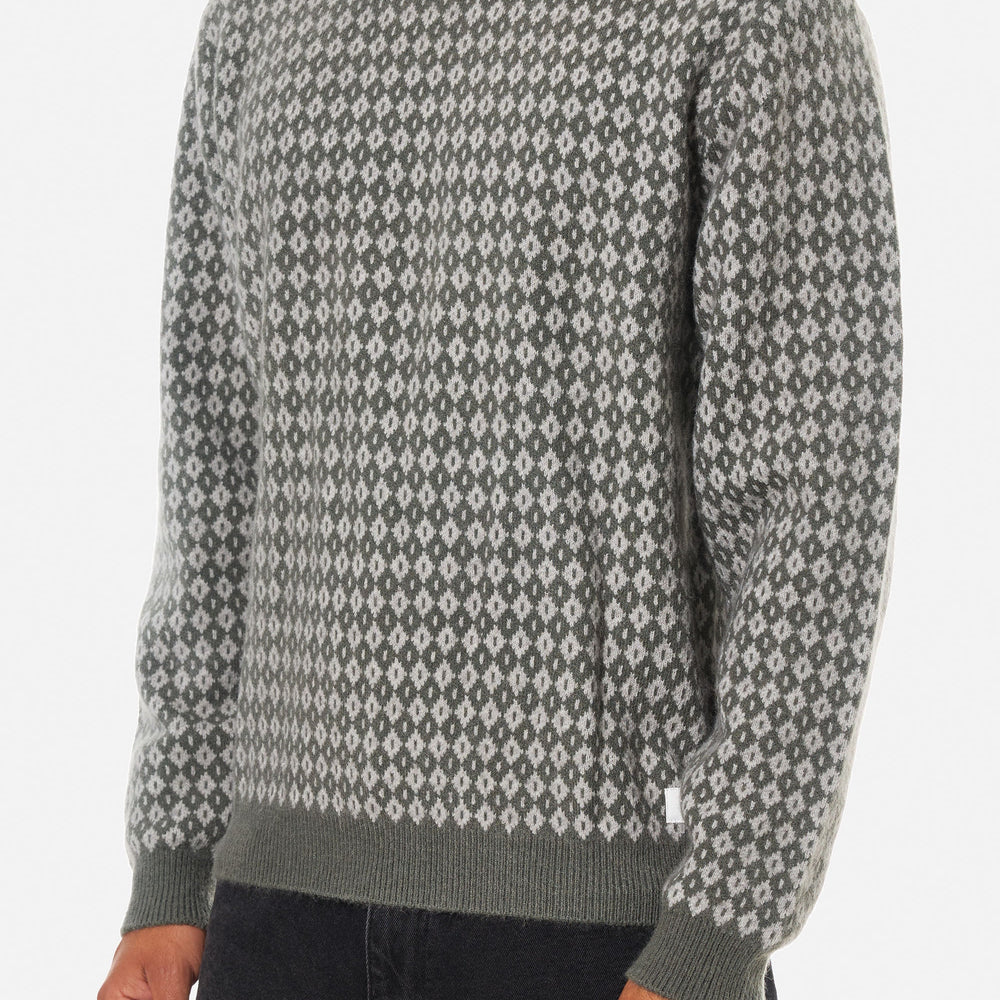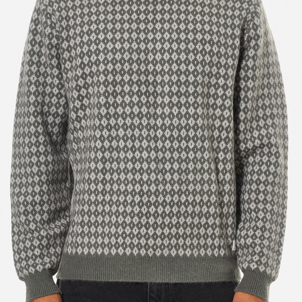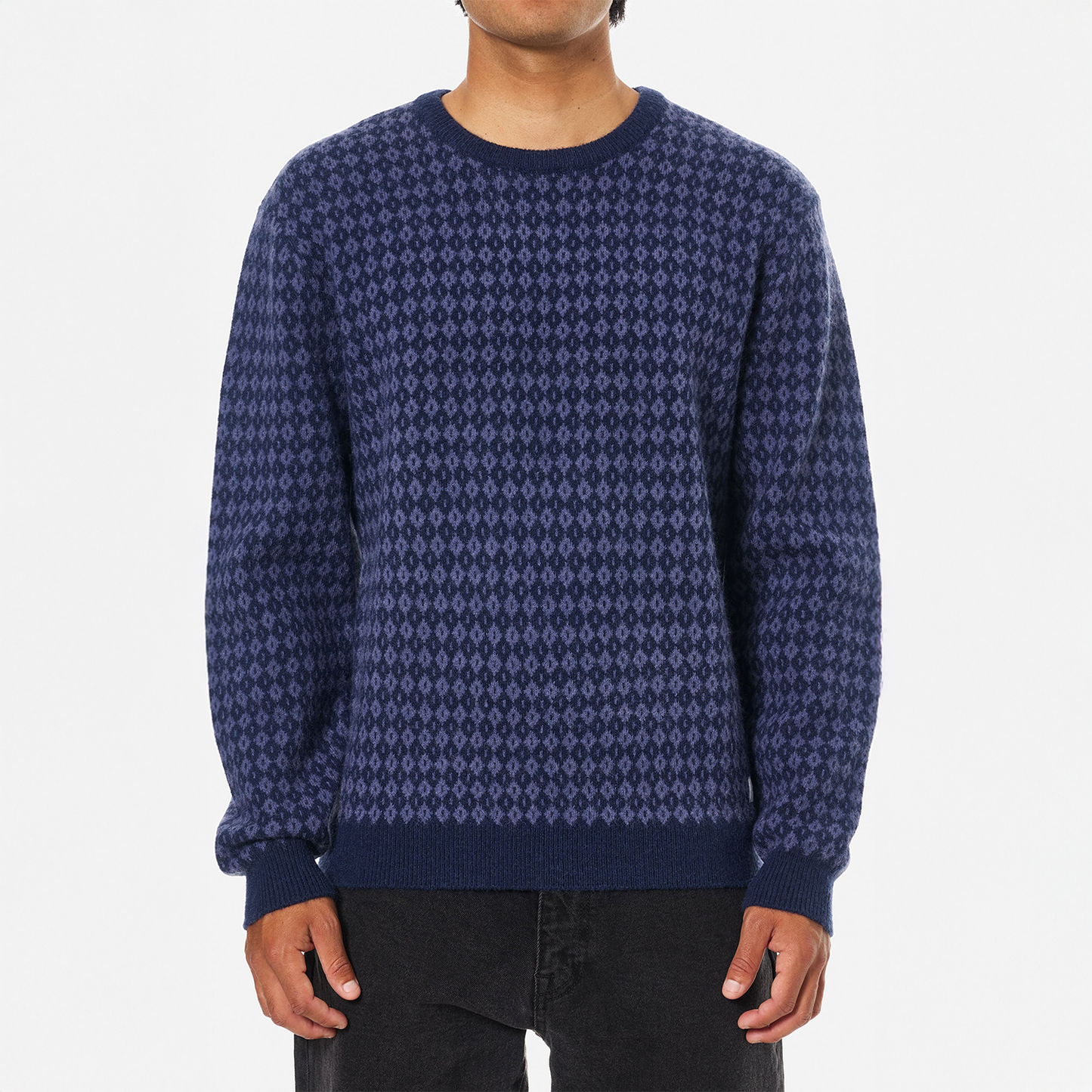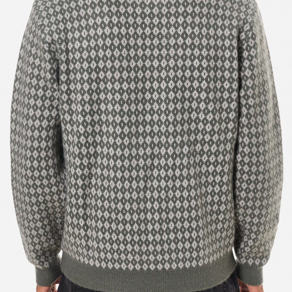 The Check Sweater is crafted from an ultra-soft blended yarn featuring a custom argyle pattern.