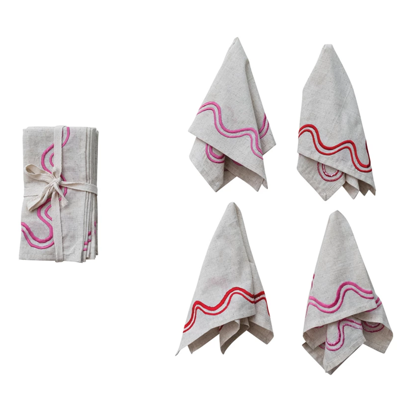 Add Napkins with Embroidered Wavy Lines, Set of 4 Tied with Tape to the cart