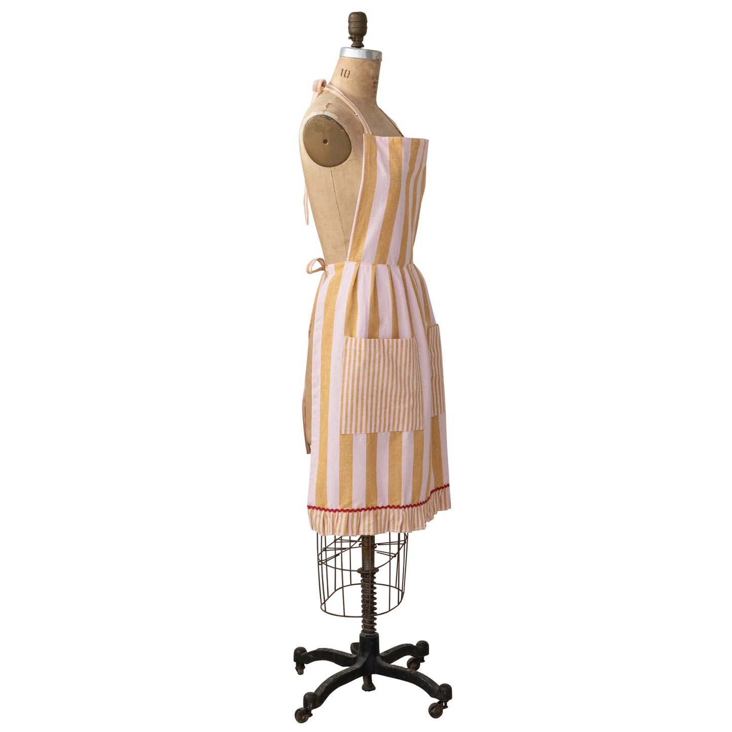 Add Woven Cotton Striped Arpon With Ruffle, Pockets, & Ric Rac Trim to the cart
