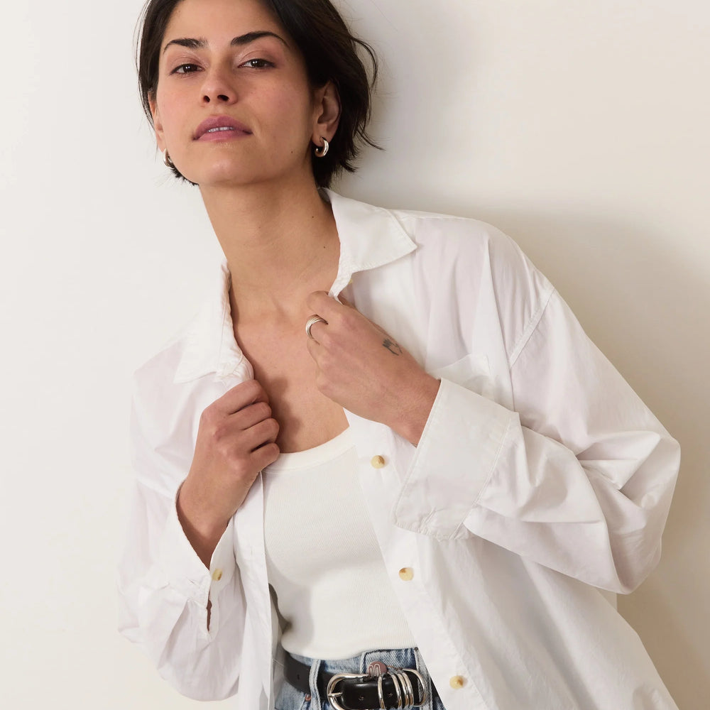 This button-down is anything but buttoned-up. Made from 100% Pima Cotton Poplin, this gem is soft, breathable, and completely fuss-free. Unlike a stiff work shirt, it’s lightweight with a perfectly lived-in feel. Bonus: it’s pill resistant, so it always looks polished, no effort required. Wear it solo or layered—either way, it’s an instant classic.