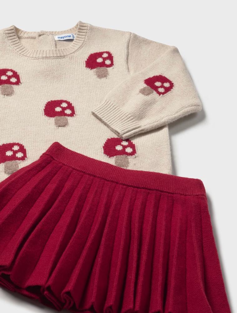 Contains recycled polyester. Sweater and skirt set for baby.