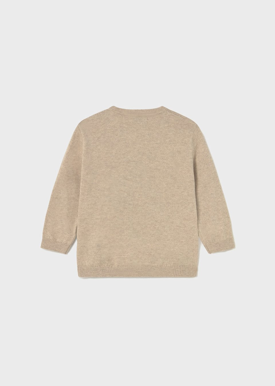Contains recycled polyamide. Long sleeved Sweater for baby. Round neckline. Back button closure at the collar for easy adjustment. Knitted fabric, soft and pleasant to the touch. Decorative elements: embroidery. Intarsia woven design technique.