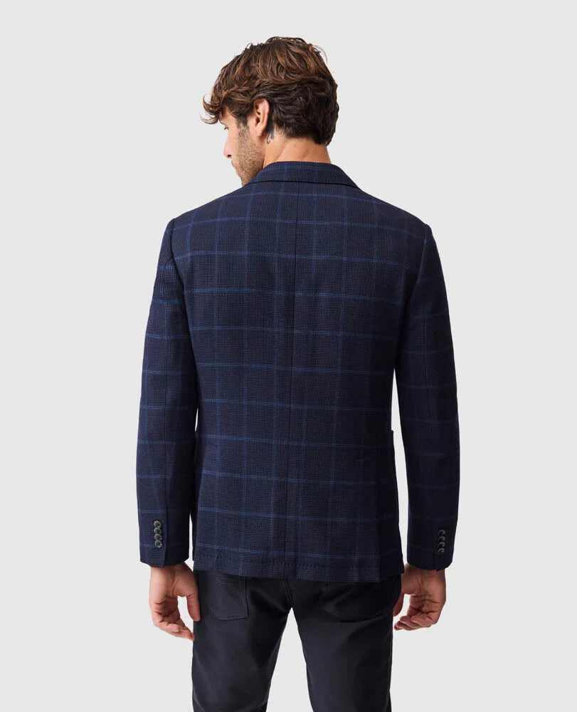 Elevate your style with a soft tailored jacket boasting a luxurious jewel-toned check texture made from a premium wool viscose blend with added stretch for comfort. This lightweight jacket offers a comfortable deconstructed design while exuding sophistication.