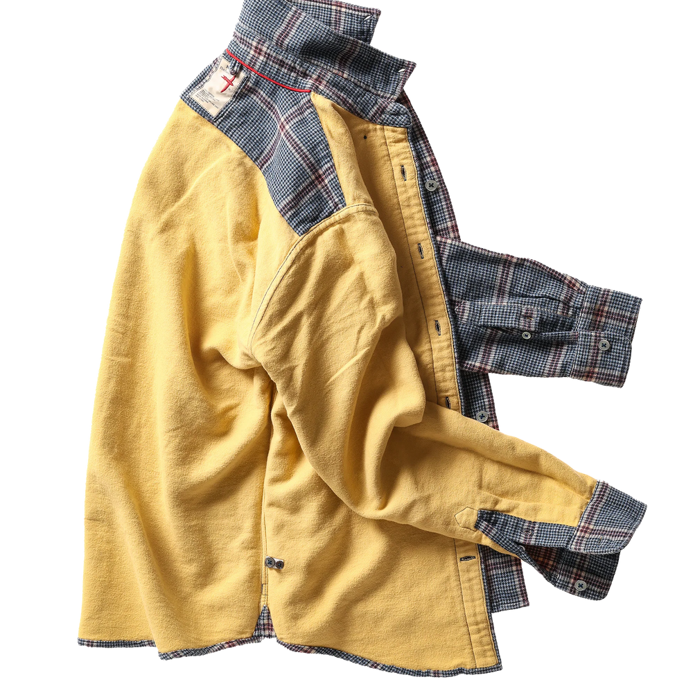Solid chamois flannel on the inside, classic yarn-dyed patterned flannel to the exterior. The result is a double-layer buttondown with loads of soft heft. Likely our coziest and most huggable shirt of the season.