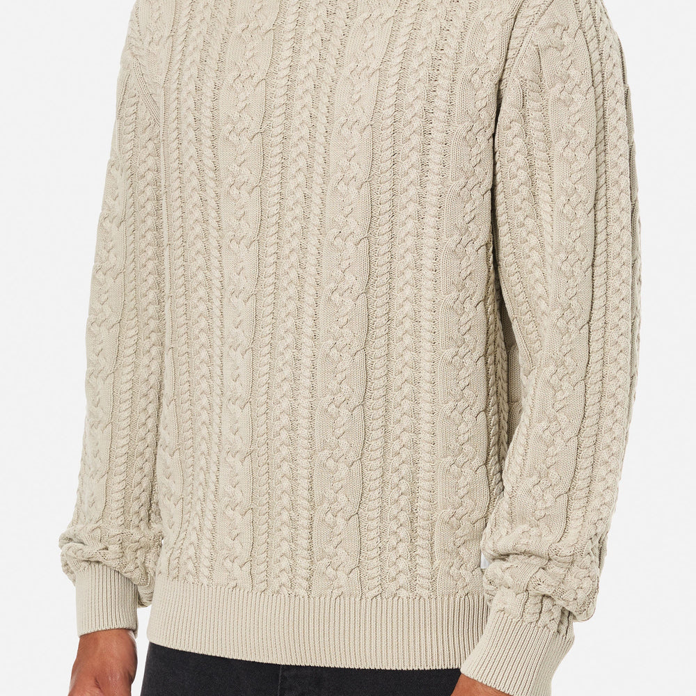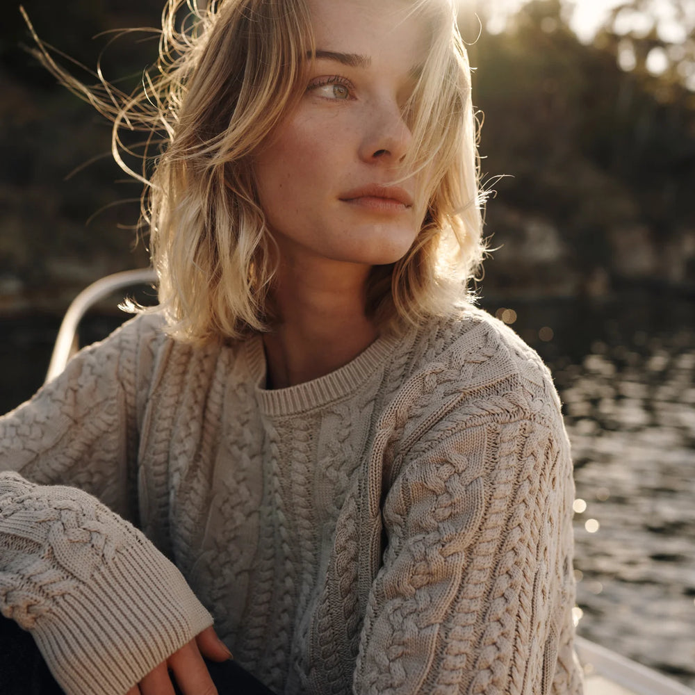 The Fisherman Sweater features a unique cable knit design and shares the same cotton yarn and vintage wash as our popular Swell Sweater, perfect for those cooler days and nights.