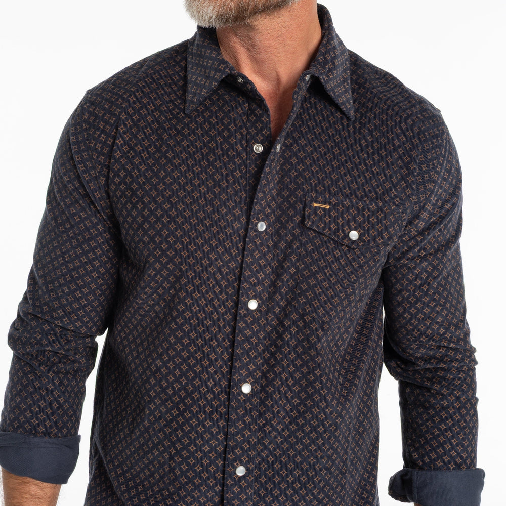 A shirt that blends classic style with a western flair. Made with a versatile cotton corduroy fabric. Looks great worn on its own or layered over another shirt.