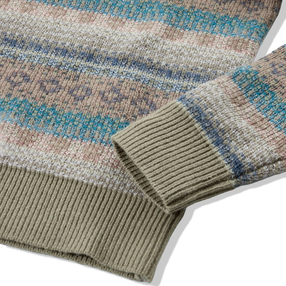Meet the Fair Isle that decided to turn things inside out—literally. The Sideout takes the traditional winter sweater and flips it on its head, revealing the reverse side of the knit for a richer, more textured pattern that’s quietly rebellious. Crafted in a warm lambswool blend with a touch of nylon for durability, it’s weighty, cozy, and built to handle the chill with ease. Muted tones of olive, cream, and weathered blue give it that well-traveled, “found-in-a-Highlands-pub” look.