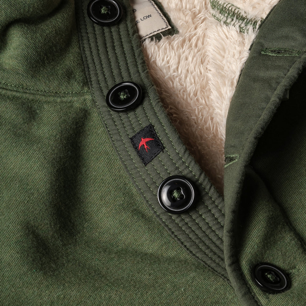 Whatever you have in store for the day, this mock will keep up. The bonded thermal cotton jersey with lightweight pile backside makes for a tremendously wearable garment, functional across a broad range of activity and temperature. Paired with our unique button placket and this mock becomes one of the most important knits that we make.