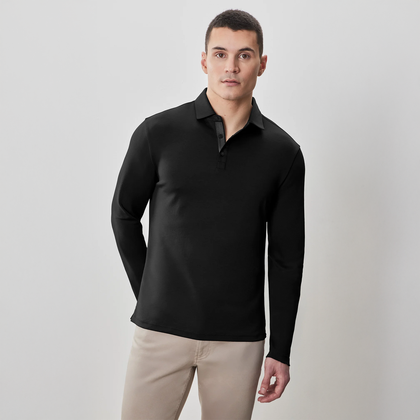 Introducing the new Barakett Polo, now in a long sleeve, crafted from extra fine Pima cotton for an incredibly soft and luxurious feel. This dressy cotton polo has a subtle luster, adding a refined touch to its design. Featuring herringbone taping on the button placket, it combines classic style with modern detailing for an elevated look.