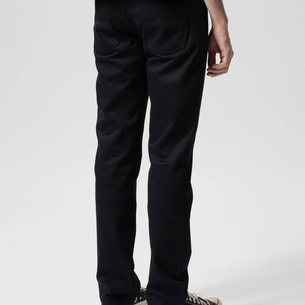Regular fit jeans with a straight leg made in organic denim that stays black. Our Everblack fabric is made to maintain its color for as long as possible, withstanding 40, or more washes without any significant loss of color. To optimize the denim for the fit, these jeans have been rinsed, making the jeans stretchy and soft. If you are looking for a pair of pitch-black jeans that do not fade this is the way to go.