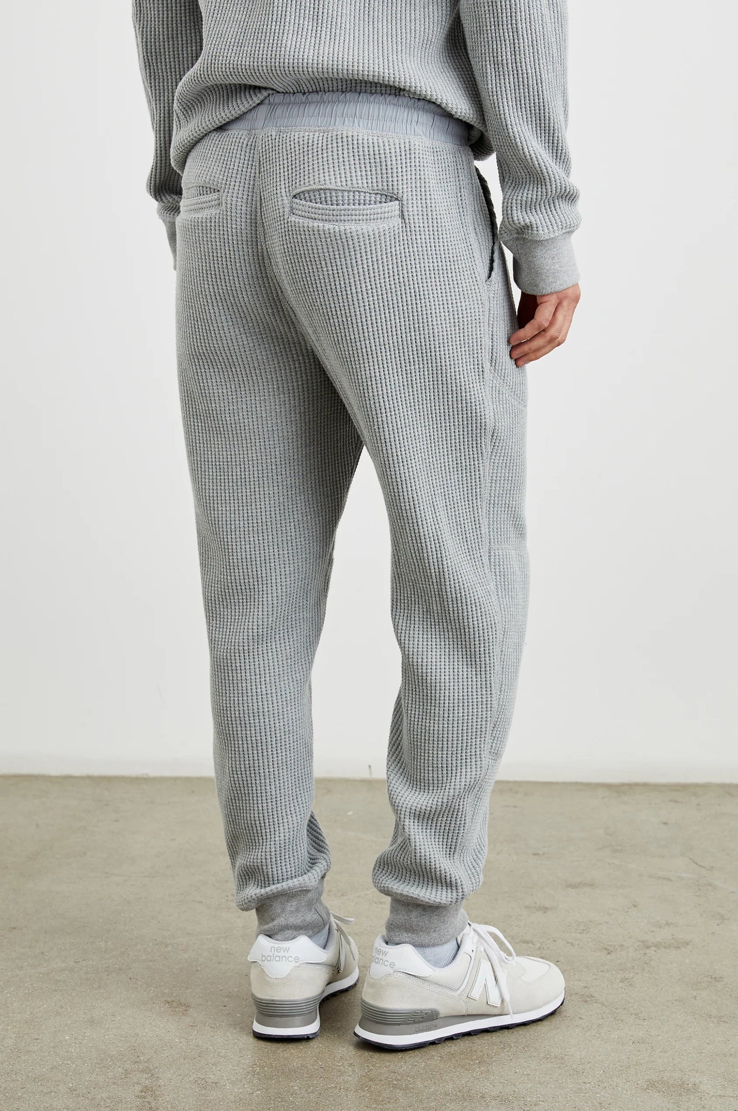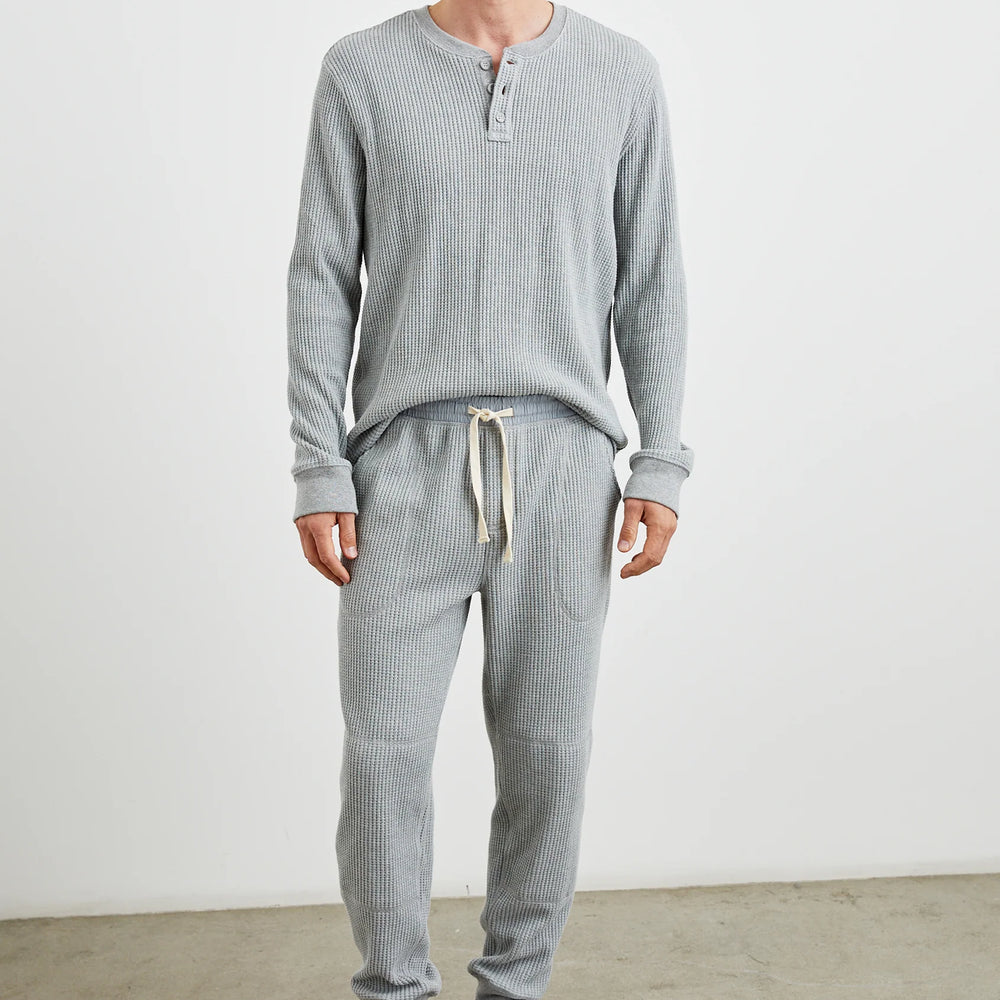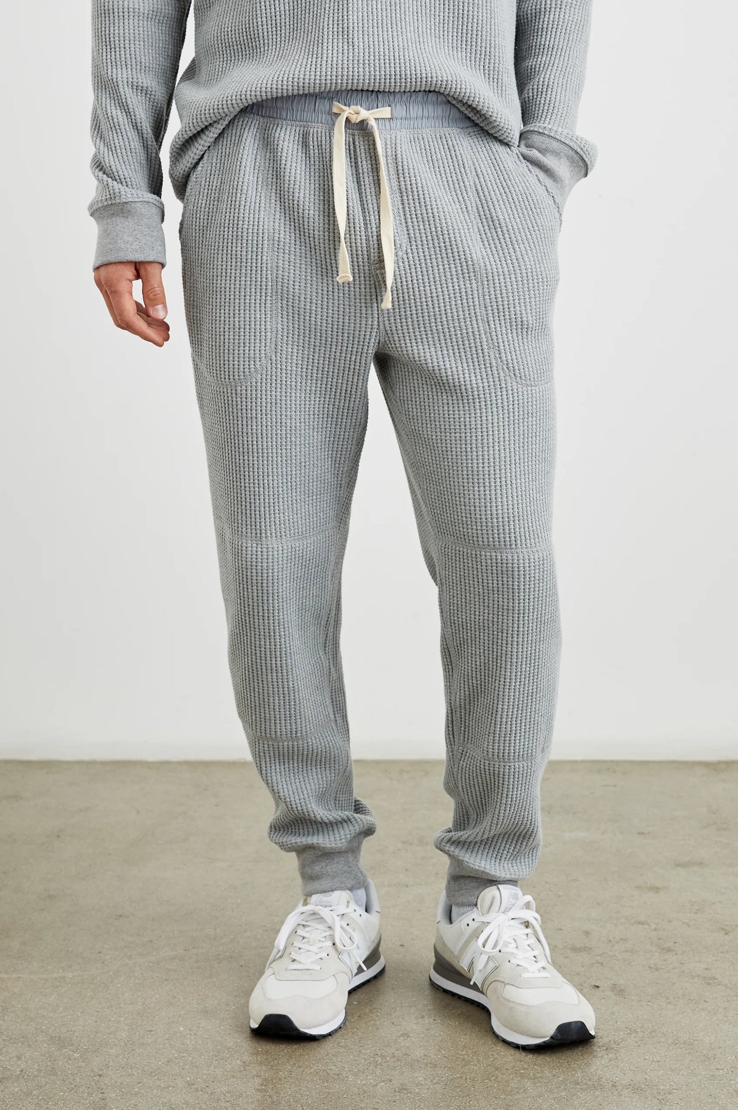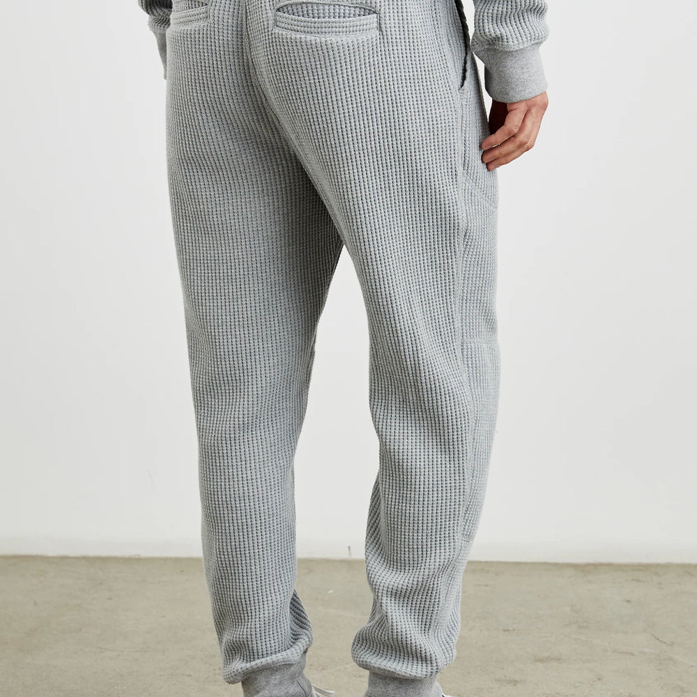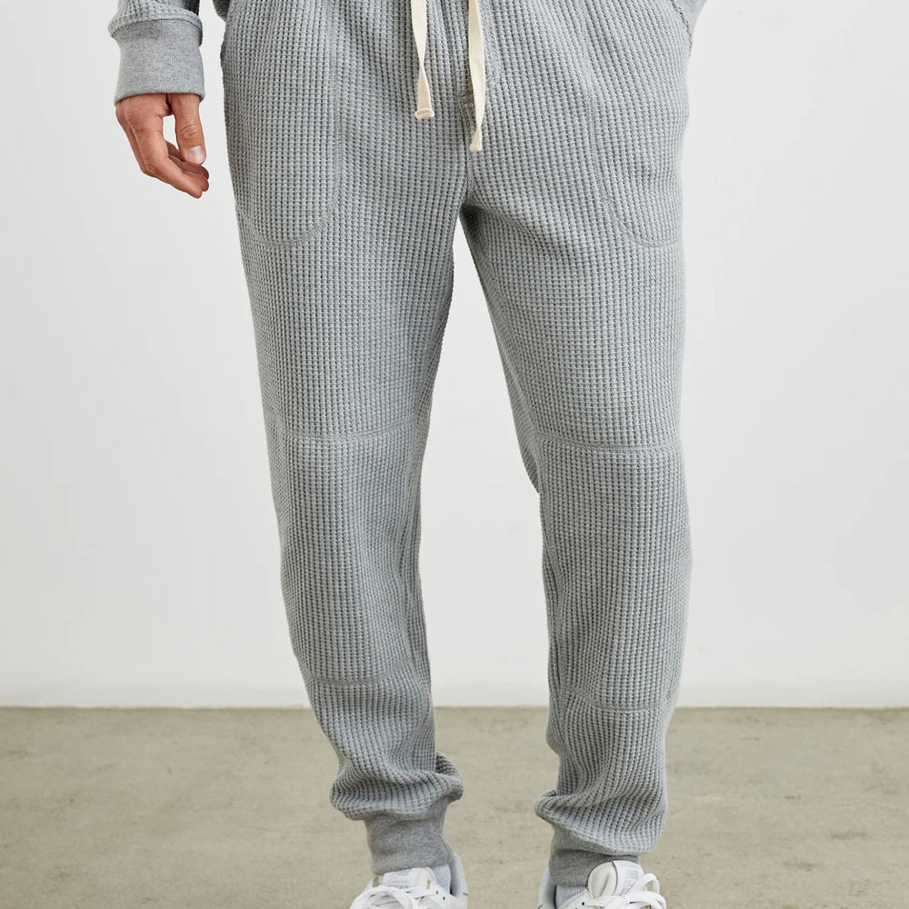 The most elevated sweatpant you've ever seen. The Cooper is essential indoor-to-outdoor transitional attire with a contrast woven waistband, front inset teardrop pocket, reinforced knee patches, back welt pockets, and rib cuffs. Crafted from a luxe cotton blend thermal, you'll never want to take these off.