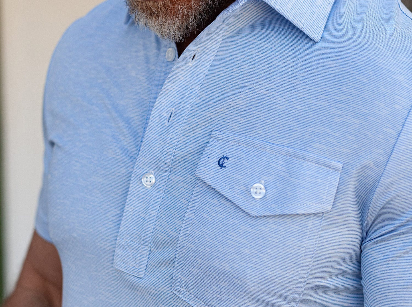 Super lightweight, stretchy 100% performance fabric makes for maximum ease of wear (and wash), whether you're playing 18 or headed straight to the 19th hole. The heather touch adds a classic look to a high performance design. You’ll never want to take this off.