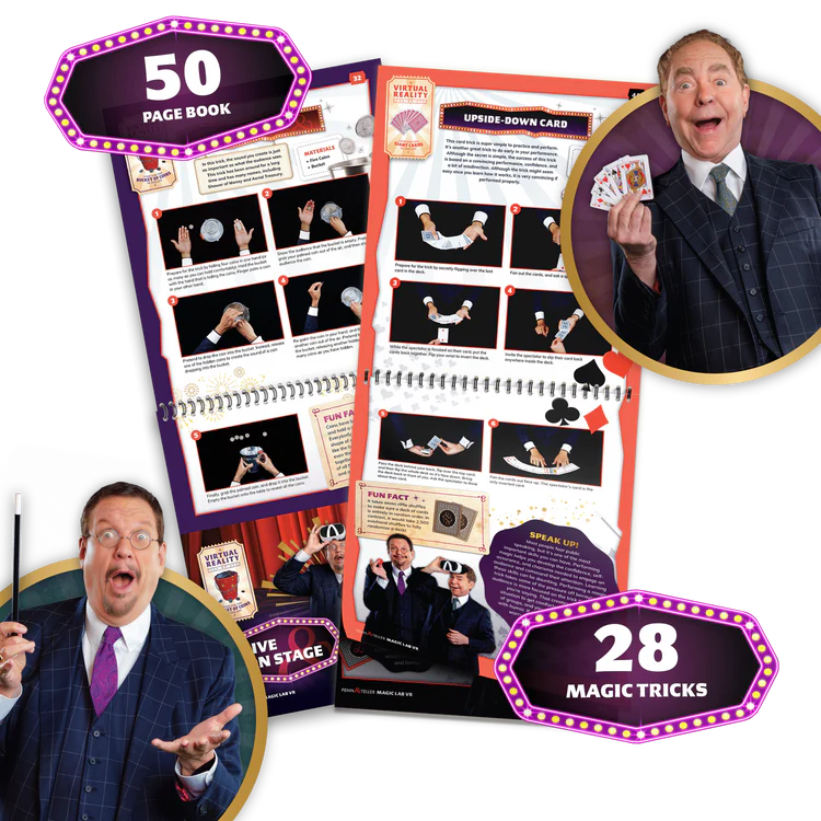 Step on stage at the Penn & Teller theater in Las Vegas to learn magic through the masters of illusion themselves in this revolutionary magic set, where tricks are performed and taught in virtual reality! Develop confidence and public speaking skills by utilizing magic as a conduit to boost social awareness, and turn any awkward silence into an opportunity to build relationships!