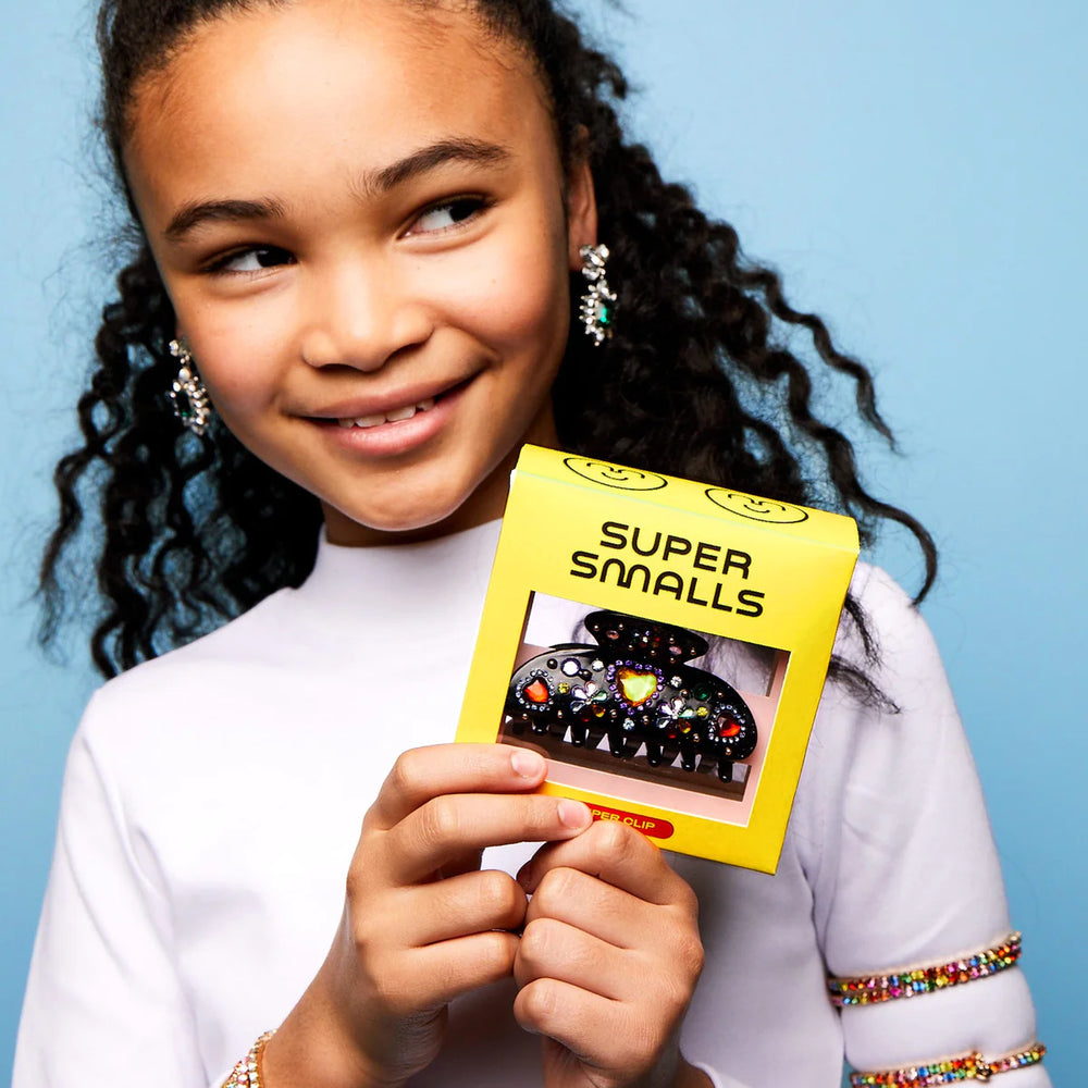 This Super Clip is going places! Like that feeling of freedom only a Friday afternoon can bring—throw your hair up and head out the door. Your go-to for easy up-dos, perfect for those dressed down days when comfort reigns, but sparkly gems are still on the brain.