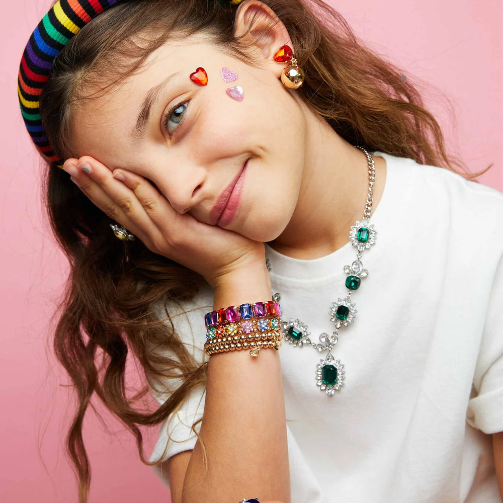 The Emerald Ball Mega Set will have you feeling all the festive fun! It’s our sparkliest set yet, inspired by your glitziest fantasies! Our styling tip? These glamorous jewels pair just as perfectly with ruffles and sequins as they do with denim and tee-shirts. Did you know emeralds represent unconditional love?