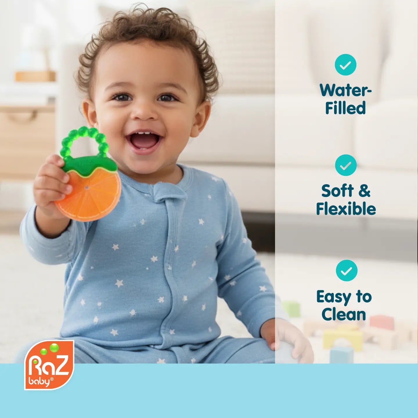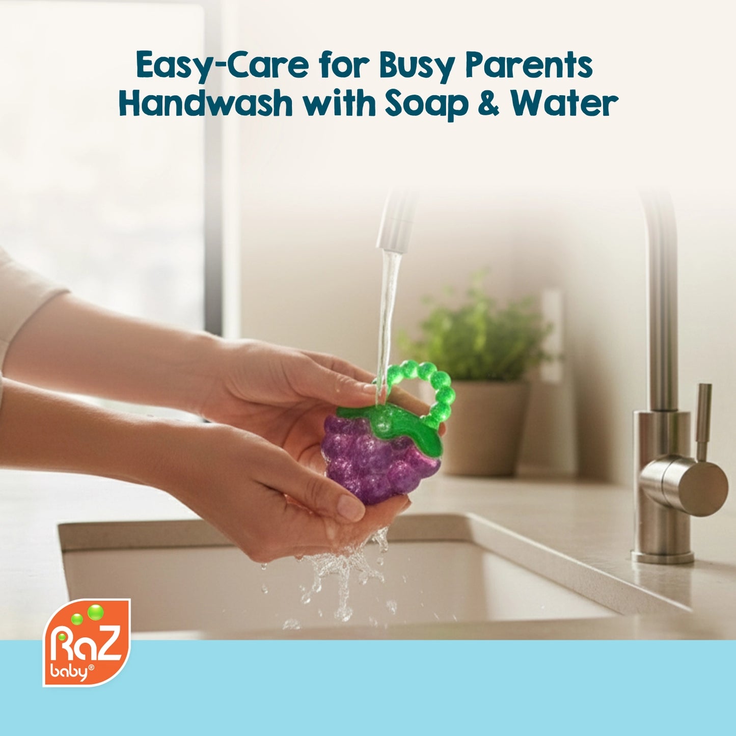 Easy-Care Design for Busy Parents - Always clean and ready. You can easily hand-wash the teether toy with water & soap. After drying, wipes clean with ease, making it a practical choice for everyday use.