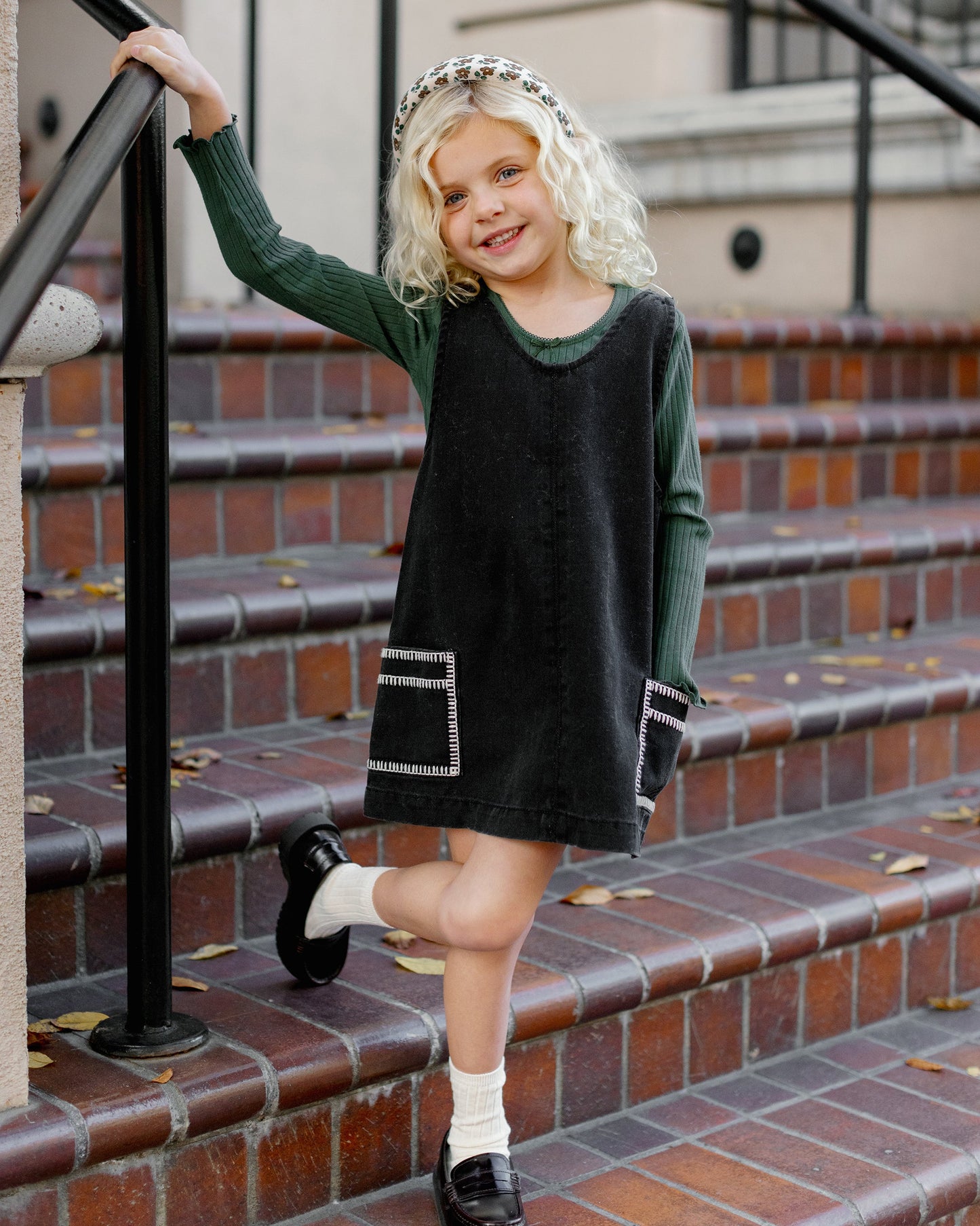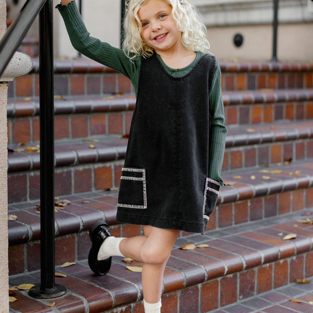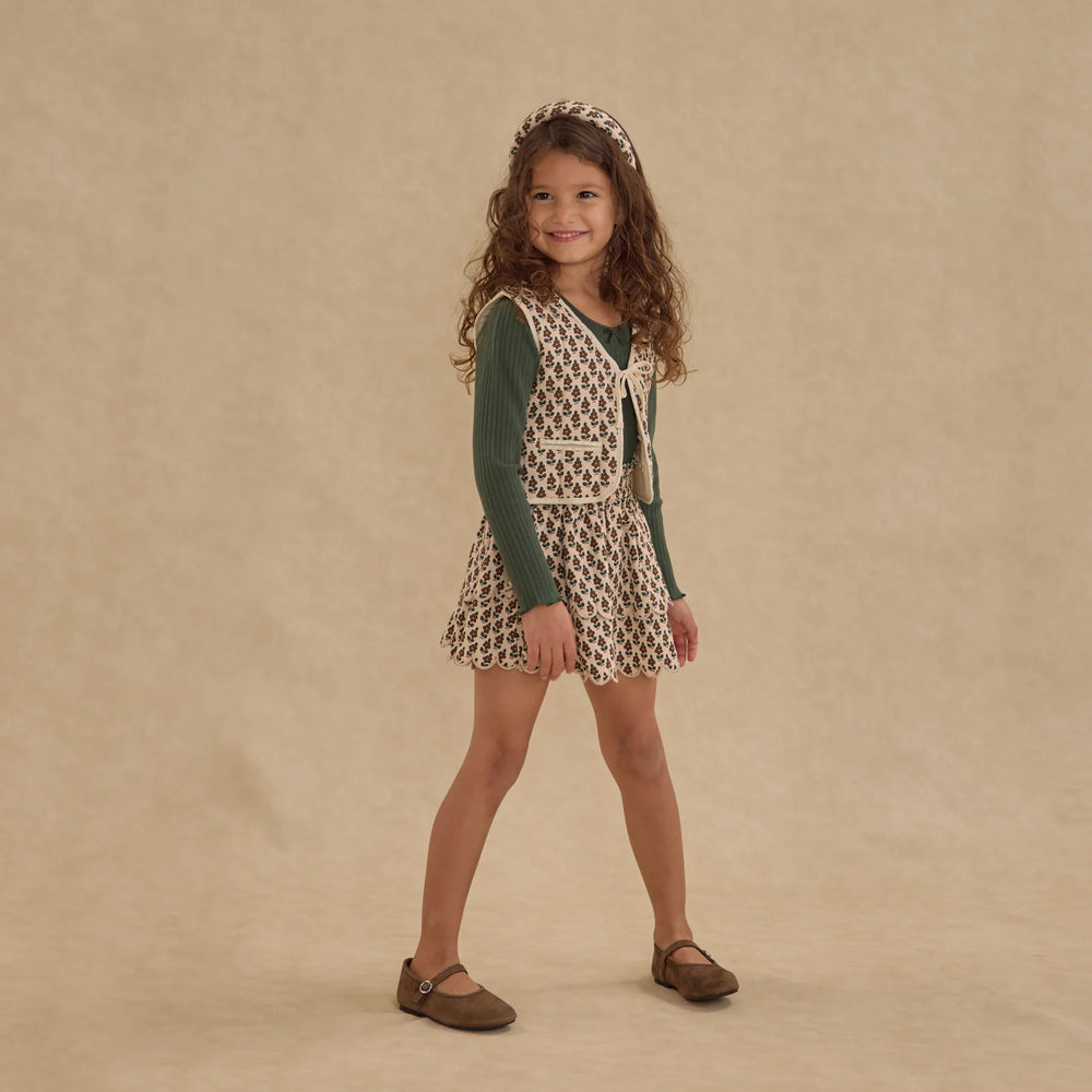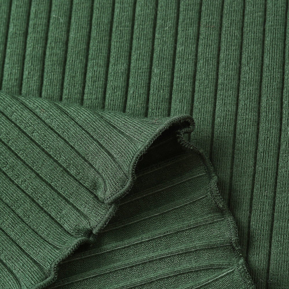 Ribbed Long Sleeve top featuring a delicate lettuce edge hem, lace-trimmed neckline, and a sweet satin bow.