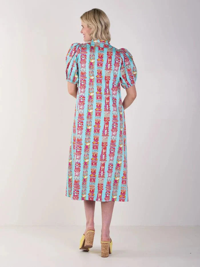 This Hampton Dress in Iconic Iris features a mandarin-style collar, puff sleeves, and a loose, easy fit that’s perfect for warm weather. The allover palm print, translated from canvas to clothing by Lowcountry artist Bellamy, brings a painterly depth and lush texture to this artful piece—blurring the line between fashion and fine art. The perfect dress for your summer getaways paired with your go-to sandal or heel!