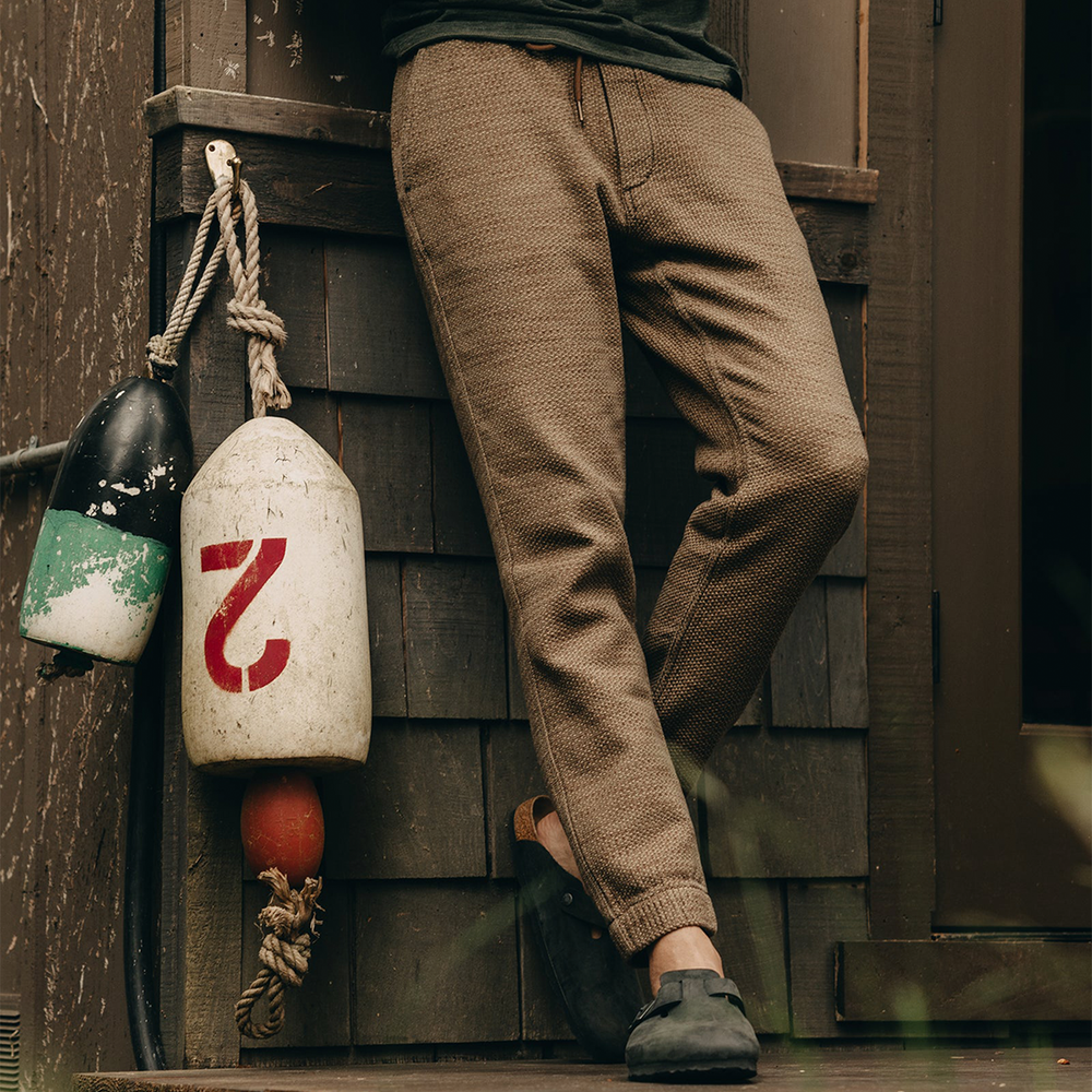 Our ultra cozy Après Pant is back to keep you comfortable all season long. Thanks to some sturdy construction and a tailored cut, our signature lounge pants aren't limited to lazy afternoons on the couch—whether you're heading to the beach, the grocery store, or your favorite lunch spot, they'll take you a good deal further than your average pair of sweats. This textured Sashiko-woven organic cotton is sure to pick up character with each wash and wear.