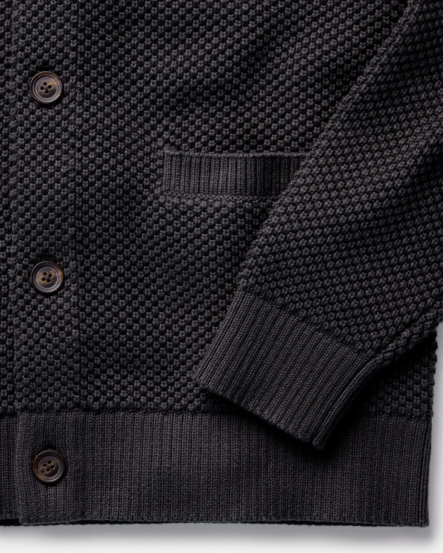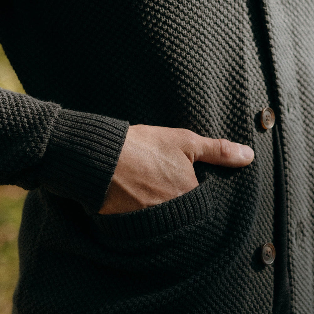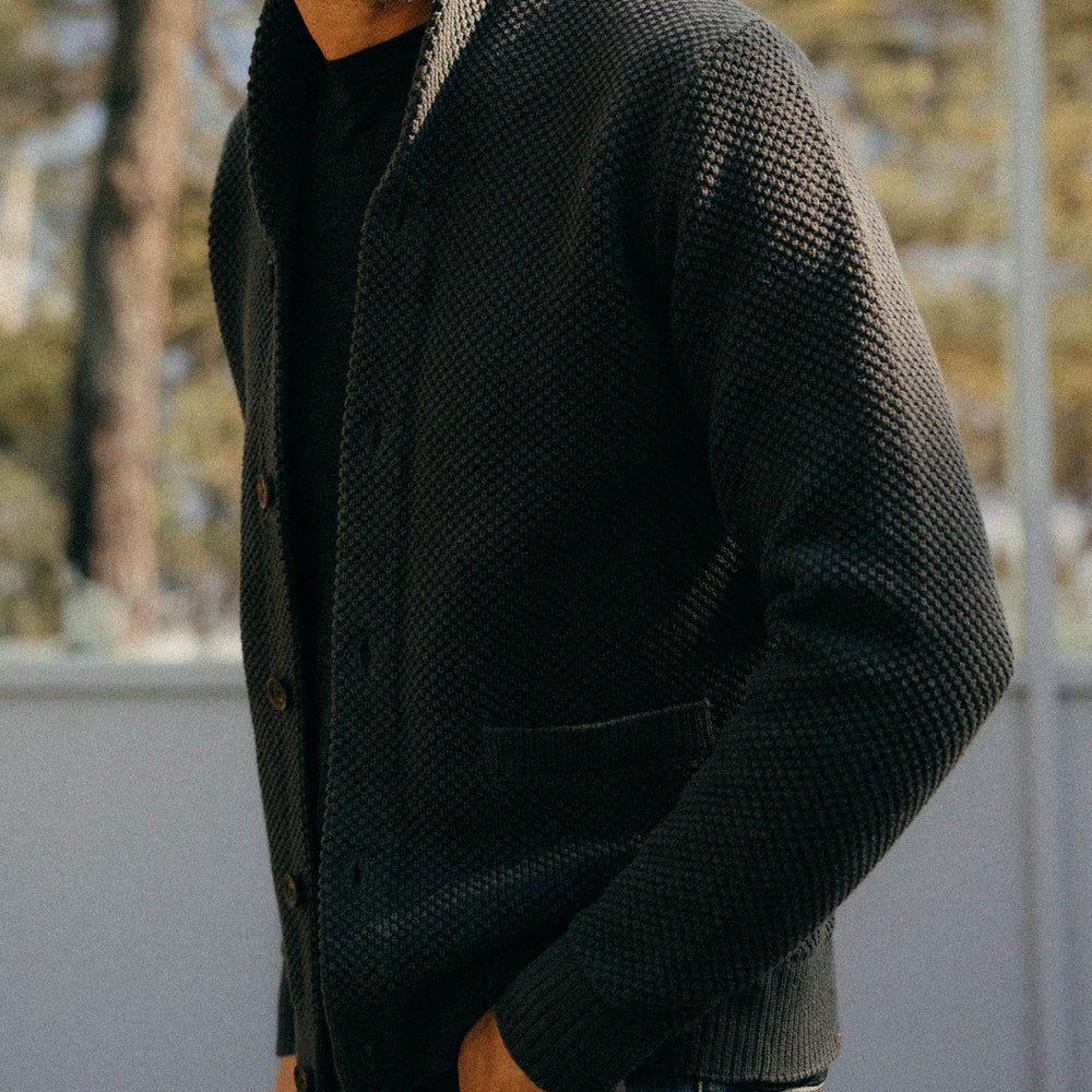A classic shawl collar cardigan, The Crawford is just as comfy on a morning hike as it is curled up with a book by the fire. Handsome seed stitch construction and ribbed accents keep the vibes vintage, while a versatile silhouette means The Crawford can lend some sophistication to your most casual outfit. And with 100% BCI cotton, this cardigan is as Responsible as it is refined.
