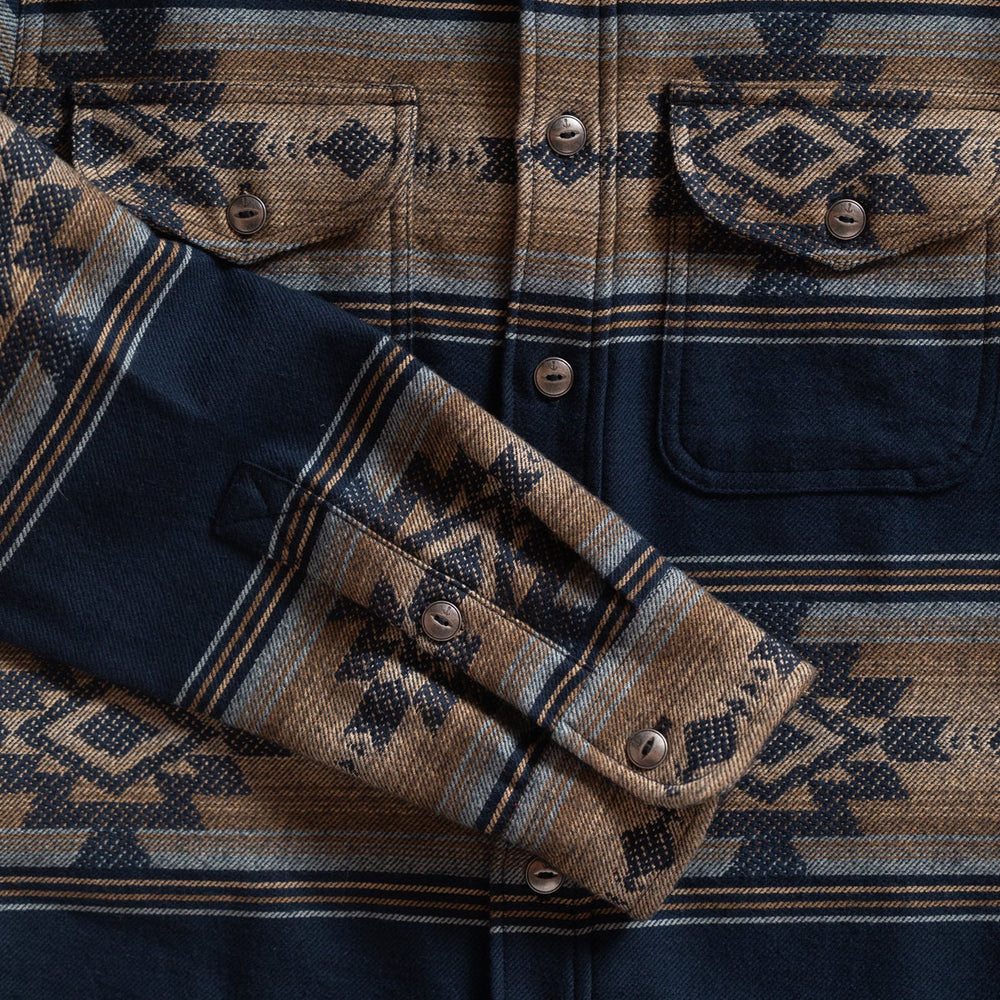 It's that time of year when pretending you'll be okay without an extra layer is complete bullsh*t, so it's time to gut check that manliness factor of, and that's alright by us. Well, the Klamath Flannel Shirt is cut by hand to ensure that all Jacquard loomed details are fully lined up. This 100% heavyweight cotton flannel is pre-washed + brushed for an extra soft feel and keeps you warm whether you're on that daily two-wheeled ride or sitting around the camp fire in the middle of the desert. Double + triple needle felled seams throughout means this southwestern stripe shirt is going to be a staple in your wardrobe for years to come. It's one of those button-ups you simply won't want to leave home without it...