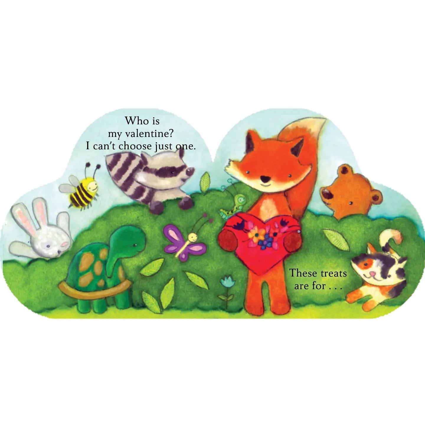 This sweet story all about Valentine's Day features adorable animals--a bunny, a fox, a kitten and a butterfly--celebrating this lovey dovey holiday with flowers, chocolate and more! This chunky, heart-shaped board book features glossy, red edges.