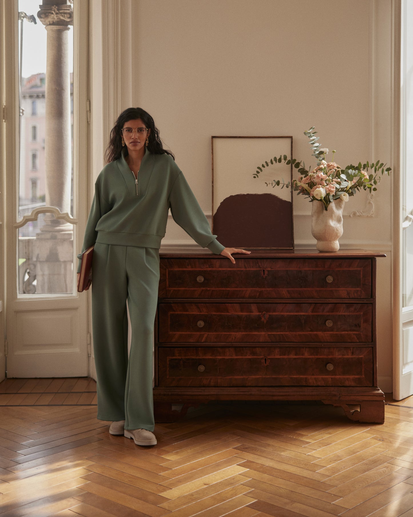 Made in our lightweight DoubleSoft® fabric, this cropped style is complete with dropped shoulders and deep cuffs. The epitome of laid-back luxury, pair this contemporary top layer with coordinating sweatpants.