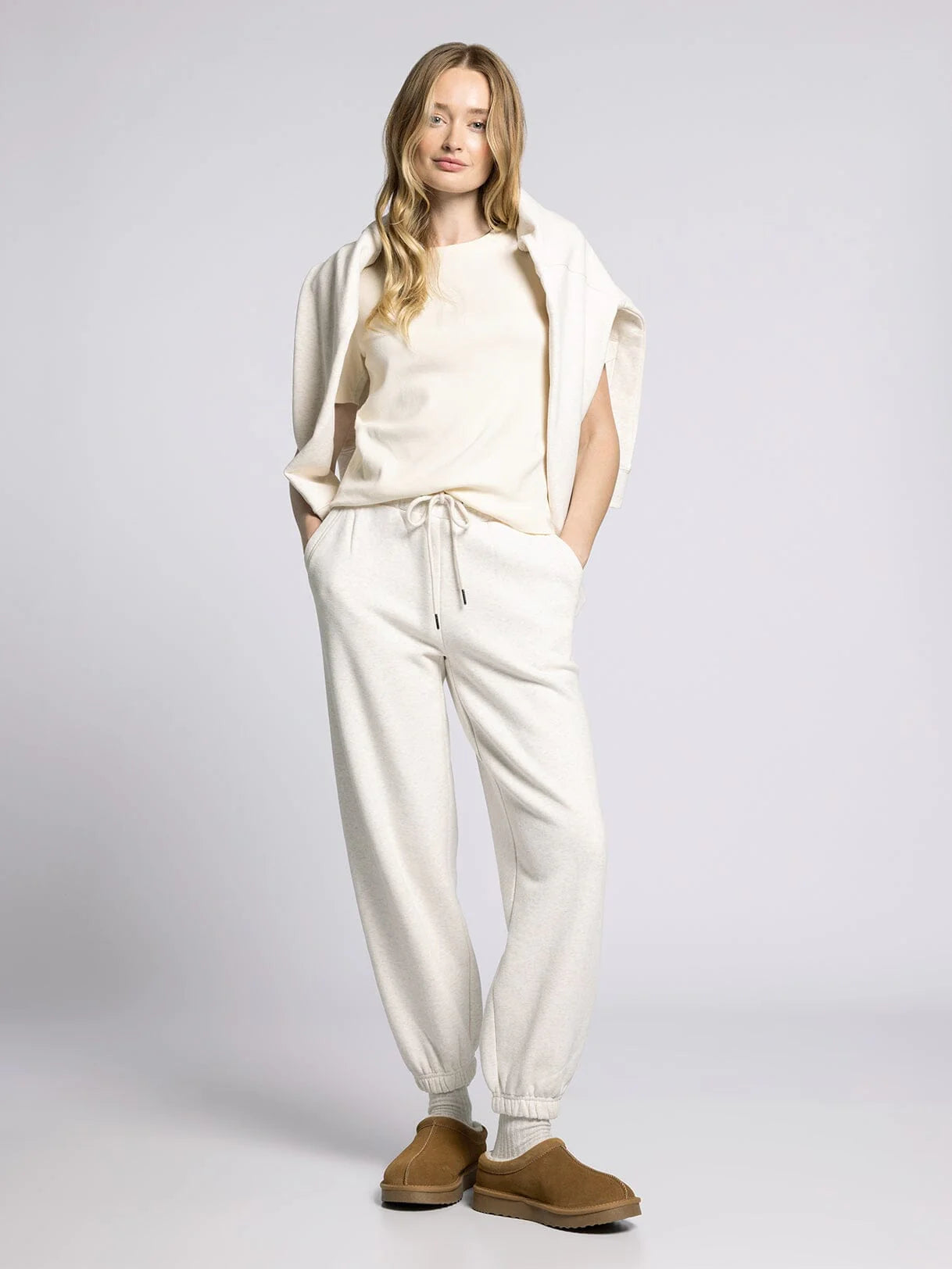 Meet our newest fabric - Serenity Fleece! Serenity fleece is ultra-soft and cozy with a buttery plush yet lightweight feel, super comfy, without the bulk. The joggers are featured in a relaxed fit with an elastic waist and dual side pockets.