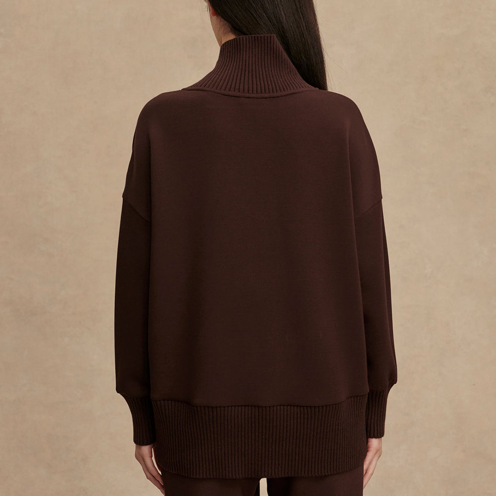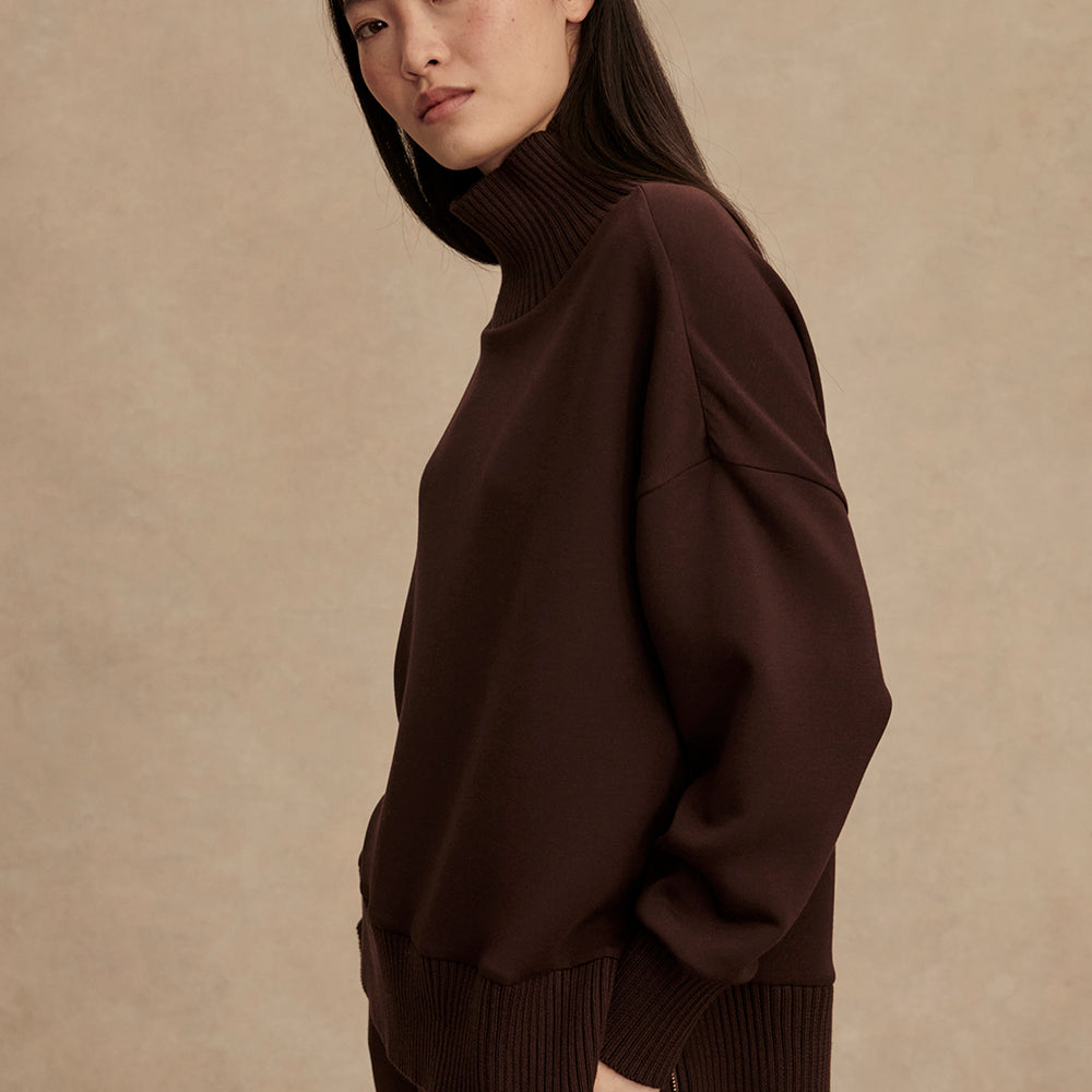 This essential sweatshirt in our DoubleSoft® fabric boasts an oversized fit and modern high-neck design. Complete with knitted cuffs, neck, and hem, it includes deep side splits for enhanced movement and style.