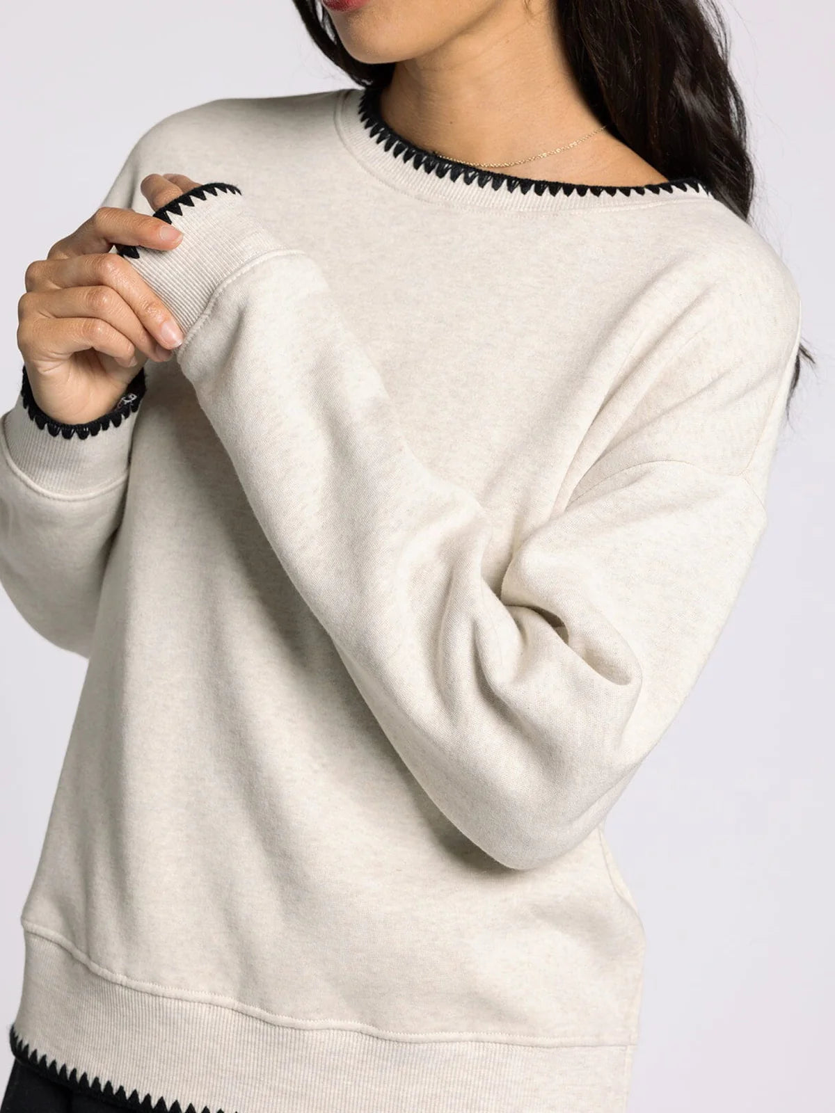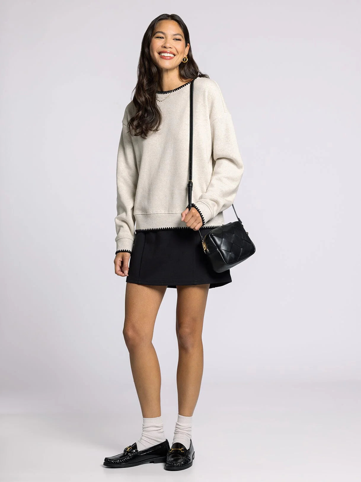 Cozy up in this so-soft pullover featured in a contrast stitch detail crew neckline for a classic silhouette you'll reach for over and over again.
