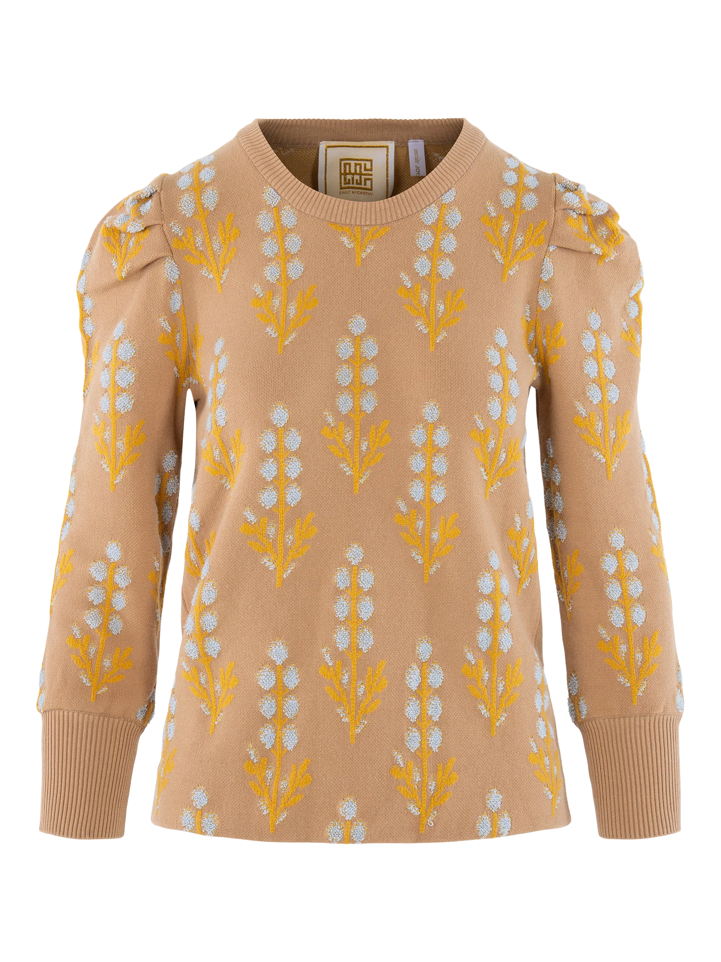 Regular price $114.00The Julia Sweater in Bluebonnet combines a feminine silhouette with artisanal texture. Designed with a round neckline and subtle puff sleeves, this knit brings gentle structure while remaining soft and wearable. The allover Bluebonnet floral design is crafted with slightly raised petals, giving a dimensional effect that adds depth and interest. Ribbed cuffs and hemline finish the look with a tailored touch, balancing the relaxed fit with a polished edge. A true standout piece that brings both charm and craftsmanship to your fall wardrobe.