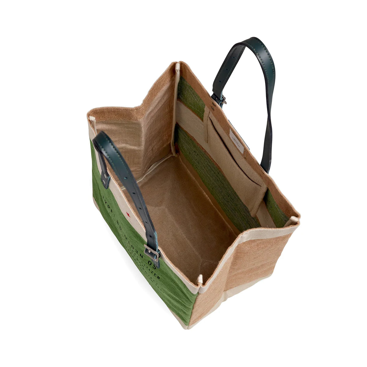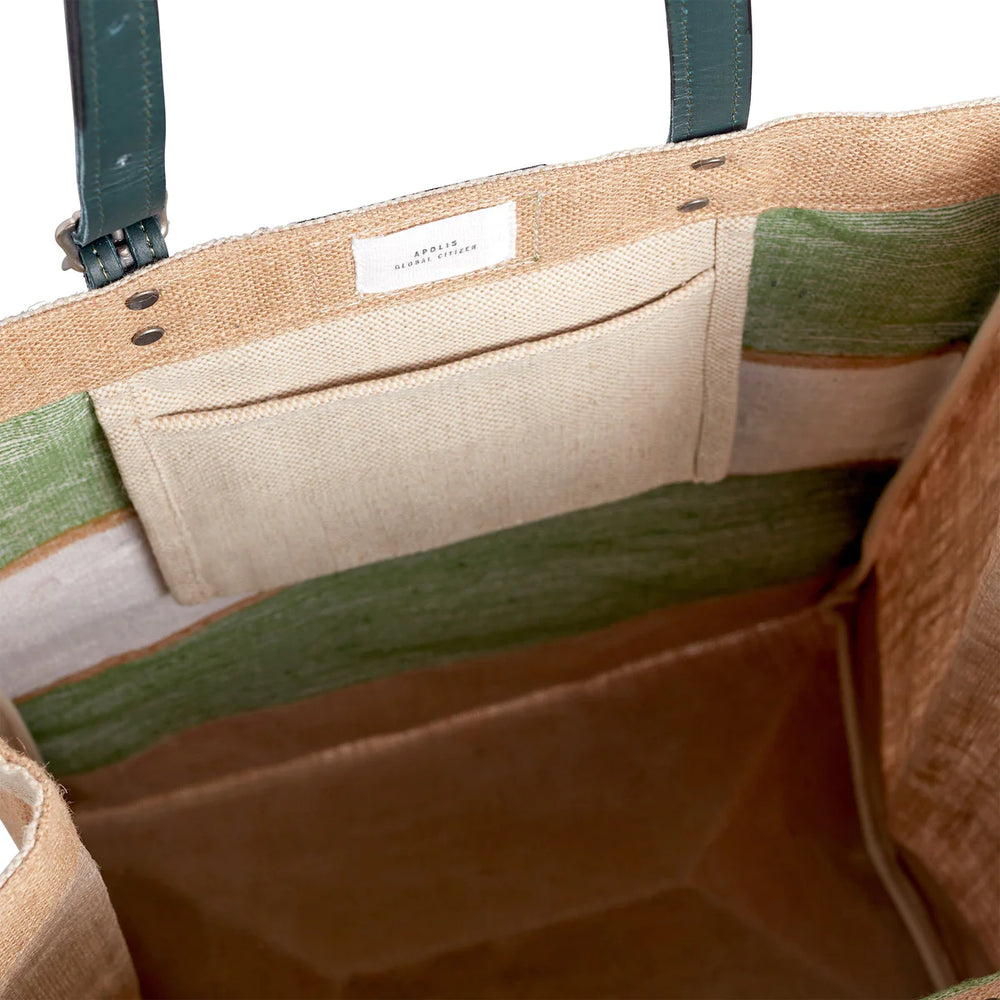 Make a statement with a Market Bag in jute with an adjustable leather handle. This large bag features a soft, adjustable leather handle, a tough and spill-proof inner lining, and a solid look for lovers of all things colorful. It's an essential item for every-day adventures.