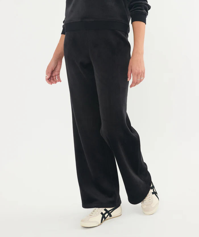 Introducing: Cord Velour. Arguably the softest thing we've ever made (seriously), this brand-new fabric is the definition of cozy. With the ribbed appearance of corduroy, and the unbelievable softness of velour, it's featured here in a mid-rise, wide-leg sweatpant you'll find yourself wanting to wear 24/7.