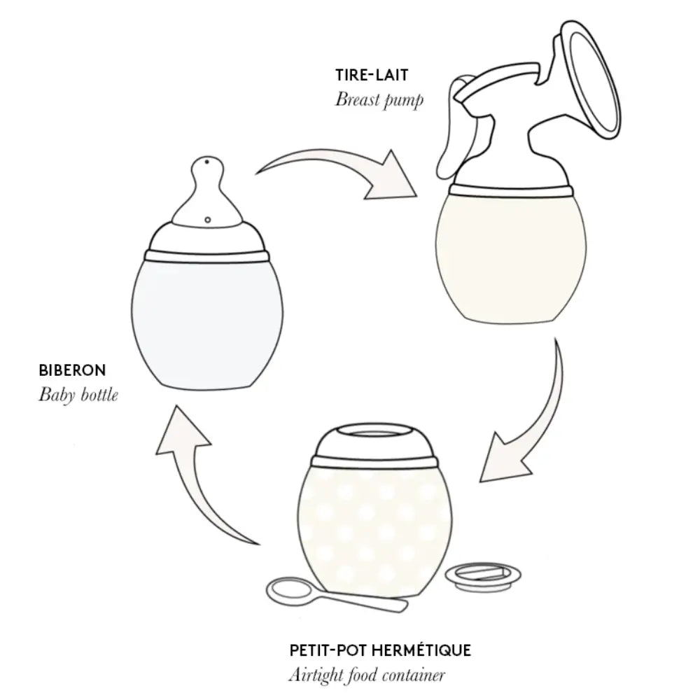 The MEDELA breast pump adapter: a 2 in 1 adapter, it allows milk to be expressed and stored directly in the Elhea bottle.