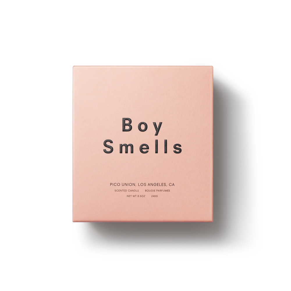 All natural white coconut and beeswax blend with braided cotton wick, in glossy black tumbler. Comes in embossed matte pink carton with matching label.