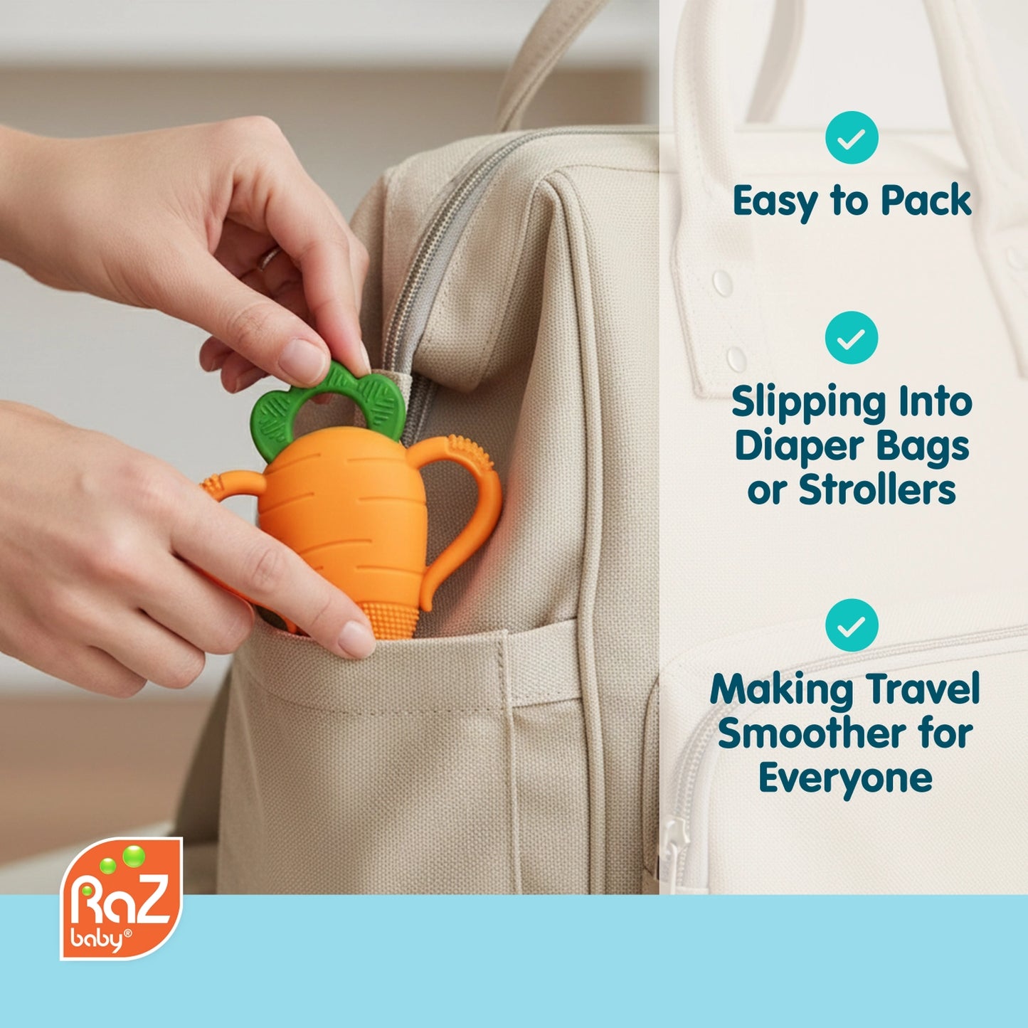 The Ideal Travel Companion - Loved by Babies Everywhere - This fun and functional teether is lightweight and easy to pack, slipping effortlessly into diaper bags or strollers. BABIES LOVE THEM, making travel smoother for everyone.